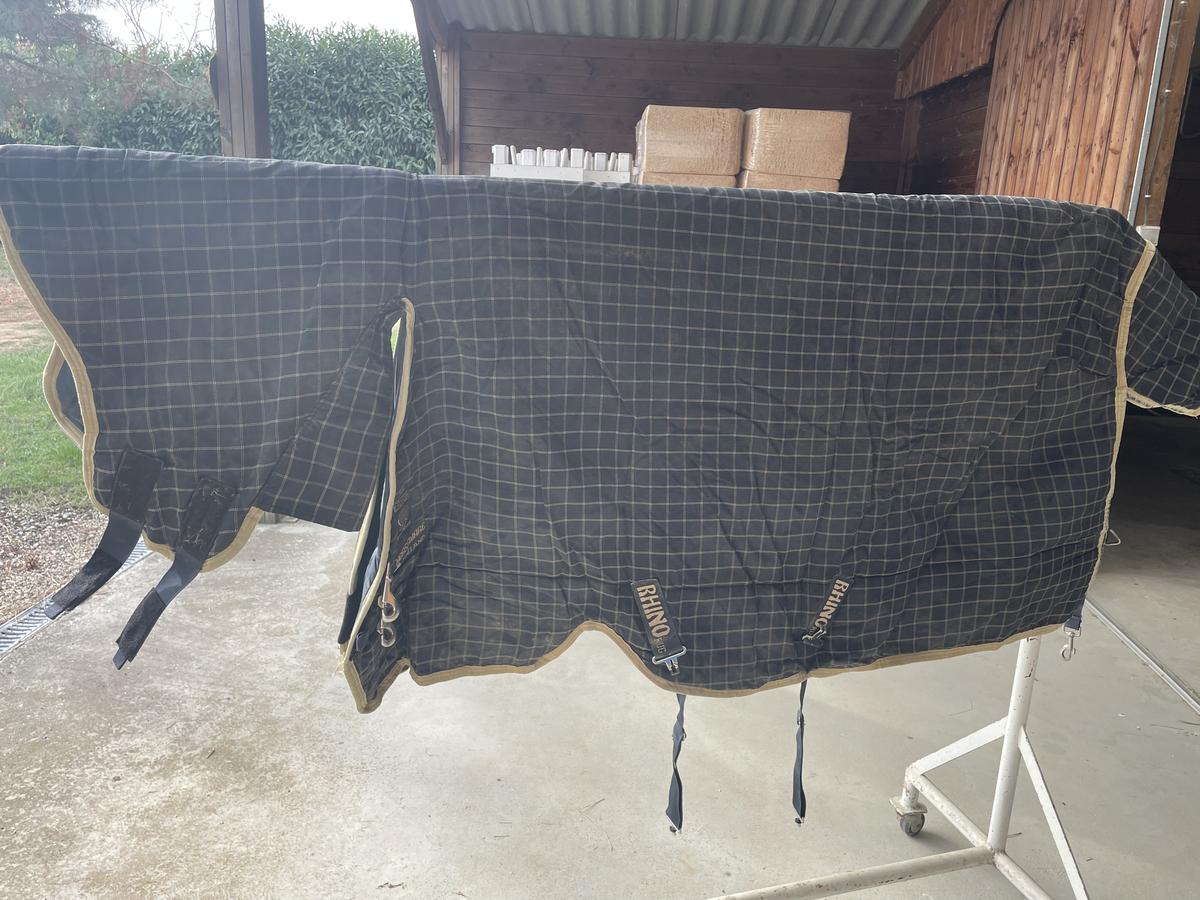 Couverture d’extérieur avec intégré Horseware Rhino plus heavy 370g, en bon état quelques usures ( cf photo)