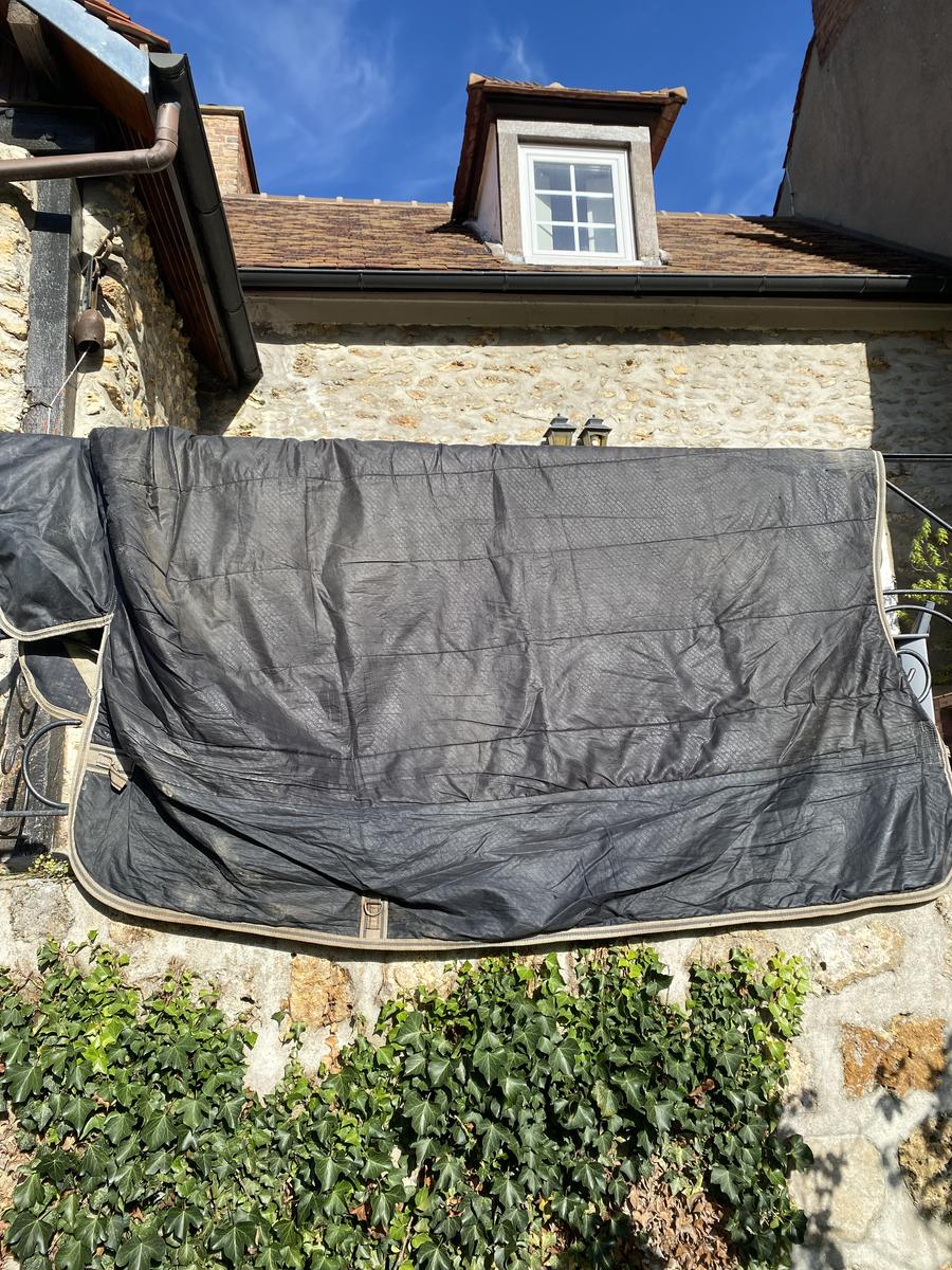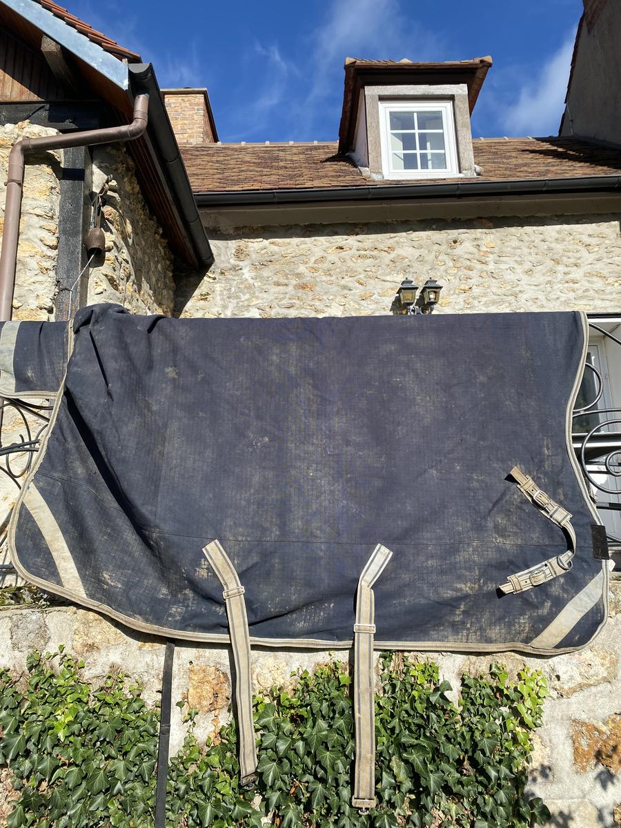 Couverture d’extérieur imperméable 200g 6.0 135 cm en très bon état, seul le passage sous la queue n’est plus présent (voir photo)