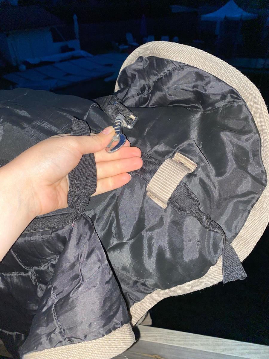 les attaches pour attacher à la couverture sont cassées, il n'en reste qu'une, mais possibilité de remettre des mousquetons, j'attachais directement en faisan des noeux.