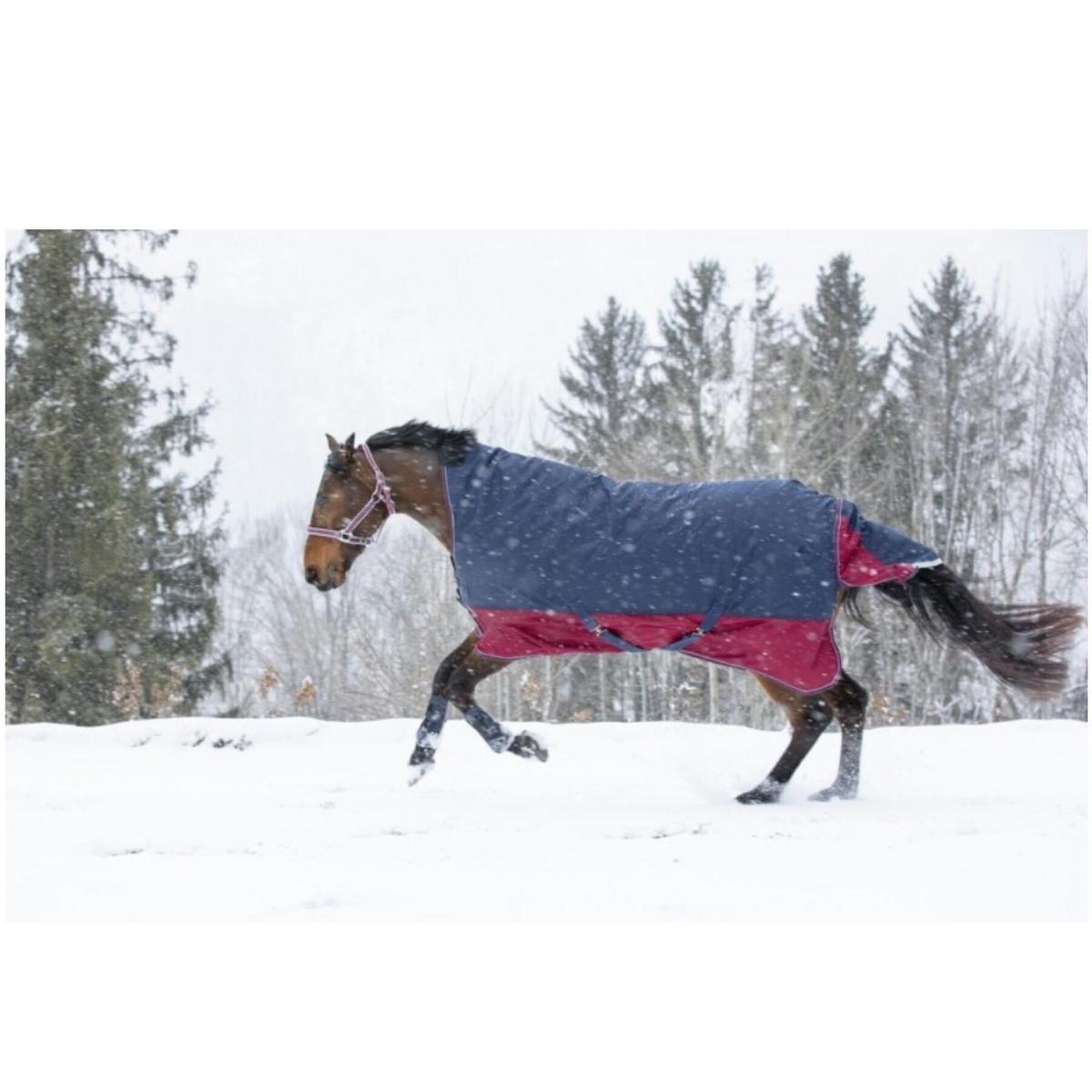 Fermeture de poitrail avec fixation rapide par boucles EasyClip, renforcée par bandes auto-agrippantes, indication de la taille sur patch en caoutchouc.