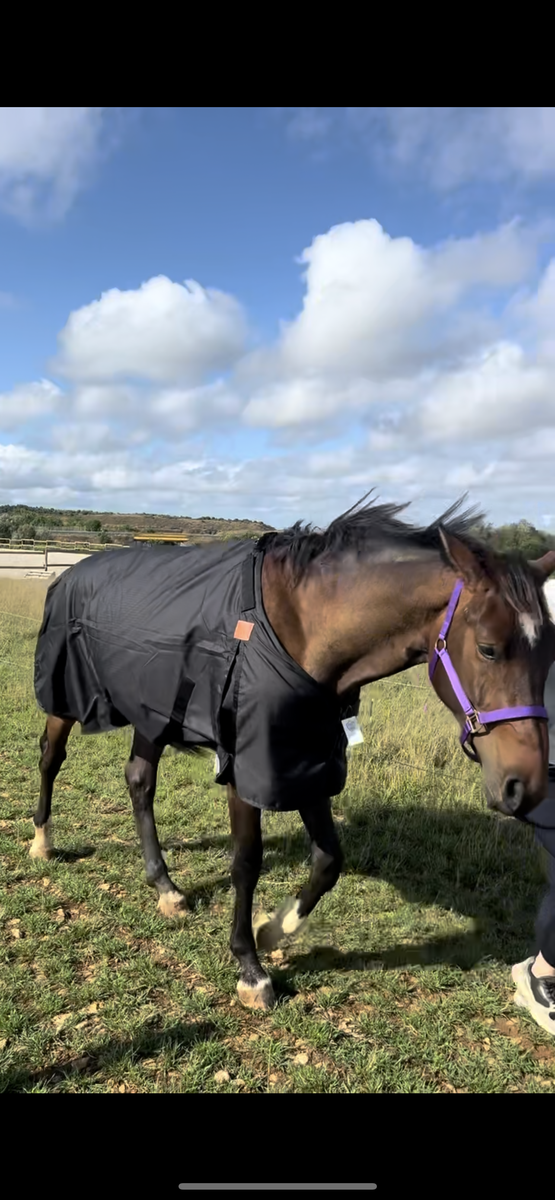 couverture portée une fois, mais n’est pas adapté à mon jeune cheval qui a encore une morphologie fine et donc ne convient pas.