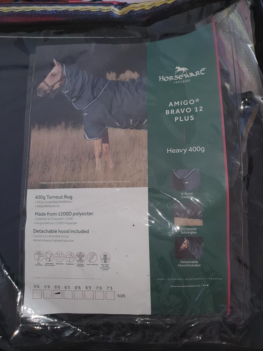 Je mets à vendre ma couverture horseweare amigo 400G + couvre cou. 1200D ( tres résistante, aucun accros). Couleur bleu marine C’est une taille 6'0 en très bon, état, utilisée seulement une dizaine de fois. Elle a été nettoyée l’hiver dernier et non réutilisée. Caractéristiques : Cette couverture est fabriquée en polyester de 1200D et a un grammage de 400 g. Elle est imperméable et respirante. La doublure est en polyester, ce qui...