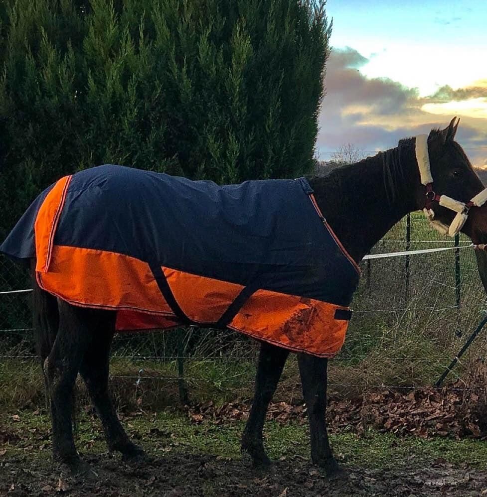 couverture imperméable en 300gr taille 135 utilisée 4 mois déchirure due au stockage qui sera réparée en bas du flanc