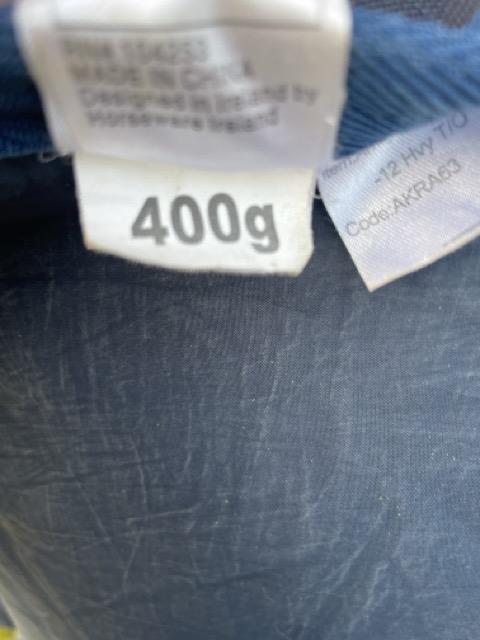 Taille 5'0 ou 100, 400gr. On peut y mettre un liner et un couvre cou.