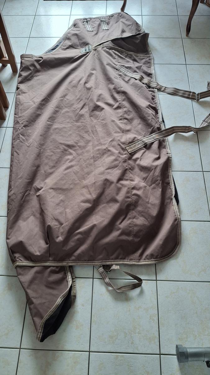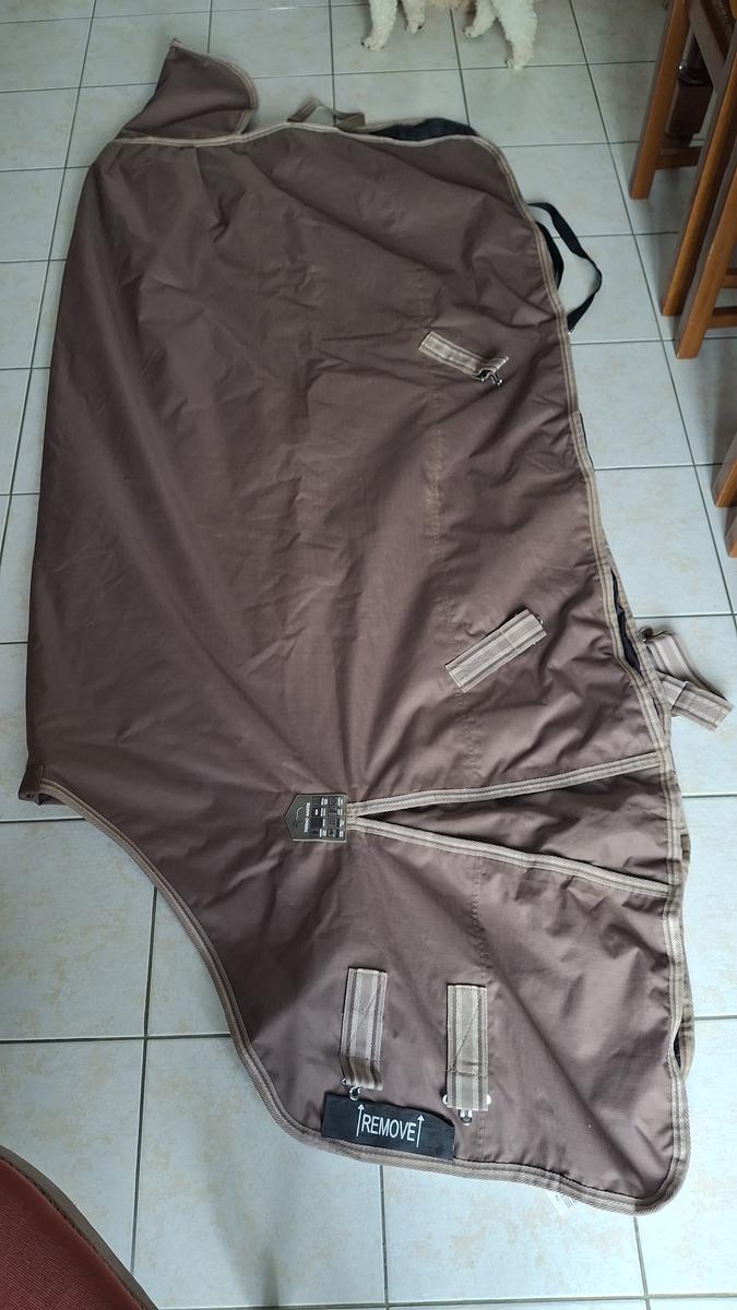 Très bon état et très peu portée car légèrement trop étroite pour les épaules marquées de mon cheval.