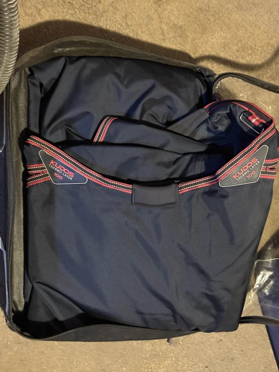 Utilisée quelques fois l’hiver dernier mais elle est trop grande pour ma jument, elle a été nettoyé et désinfecté par une professionnelle.