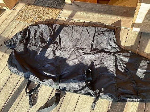 Sauf une déchirure sur le dessus coté gauche qui a été réparée solidement.