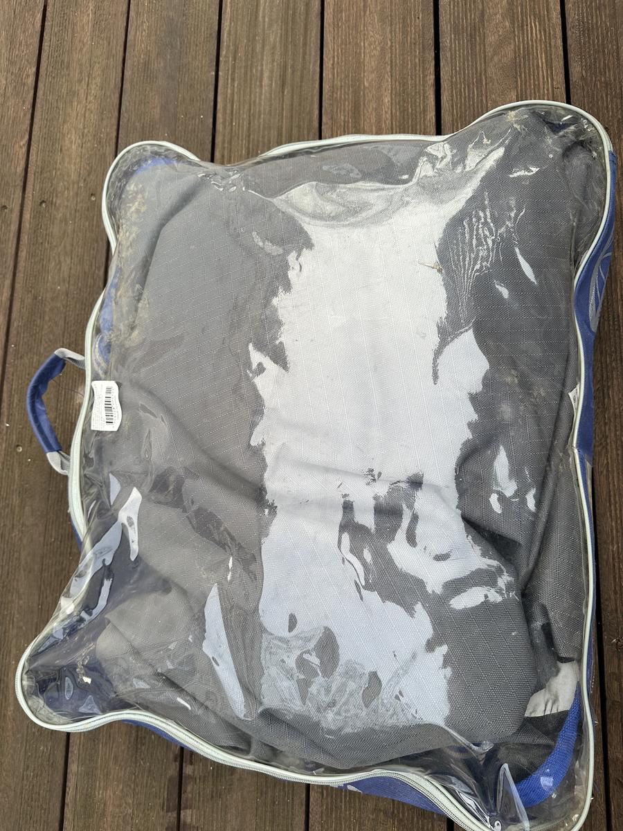 En bon état, une des languette réfléchissante à l'épaule est abimée mais cela n'altère pas la qualité de la couverture.
