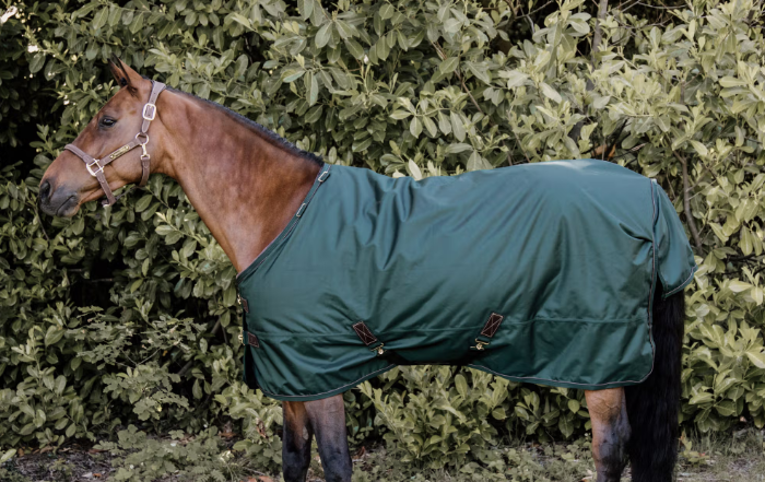 Couverture kentucky, achetée il y a 3 ans mais jamais utilisée car trop petite pour ma jument. Neuve avec étiquette dans son sac d'origine. Magnifique couleur vert sapin, en taille 145cm, intérieur en moumoute. Grammage de 160g