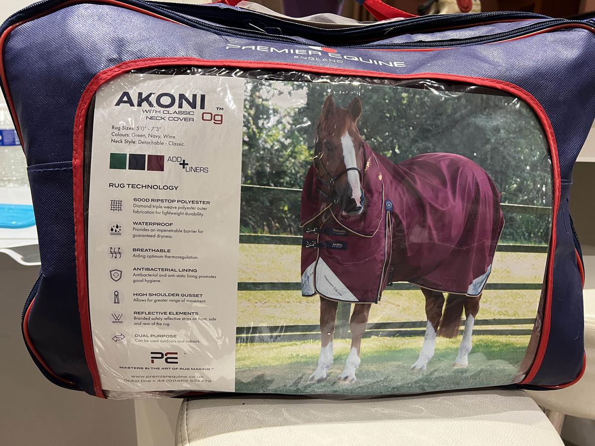 Jamais portée, encore étiquetée, couverture imperméable 0g avec couvre cou détachable, possibilité d’ajouter des liners de la même marque (Première Équine) 600D taille 145