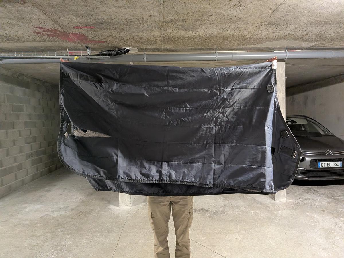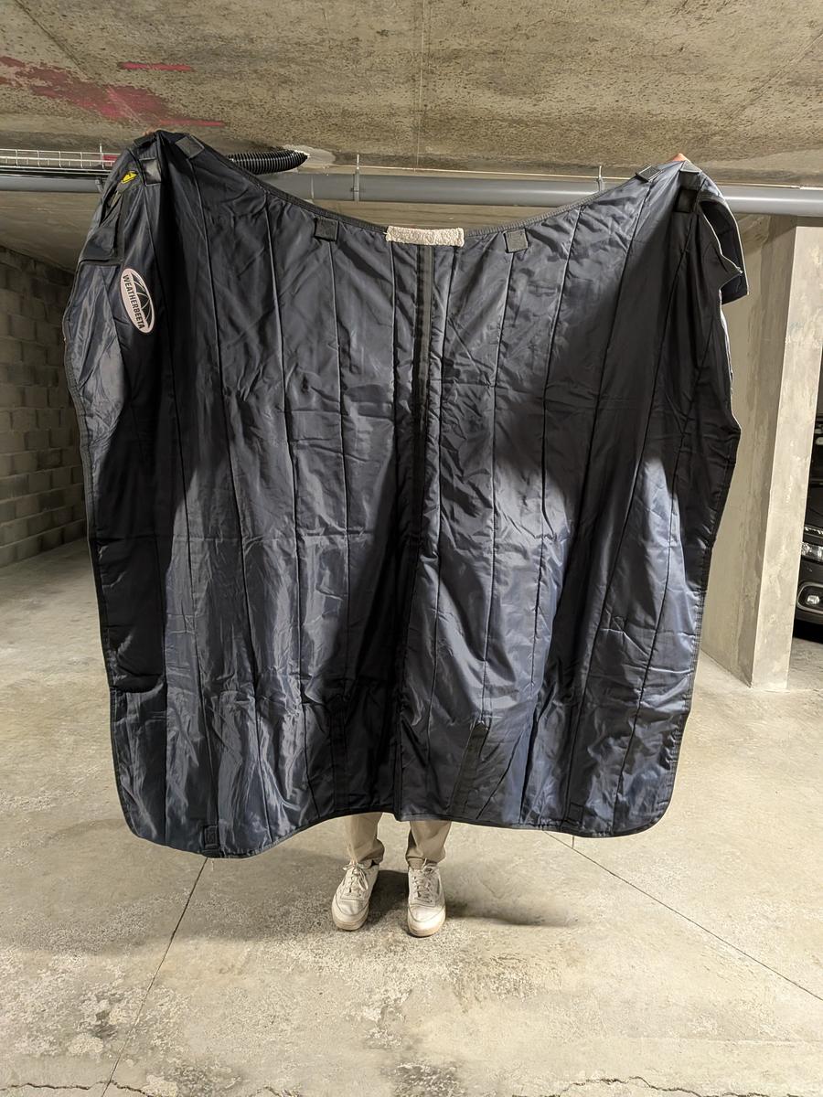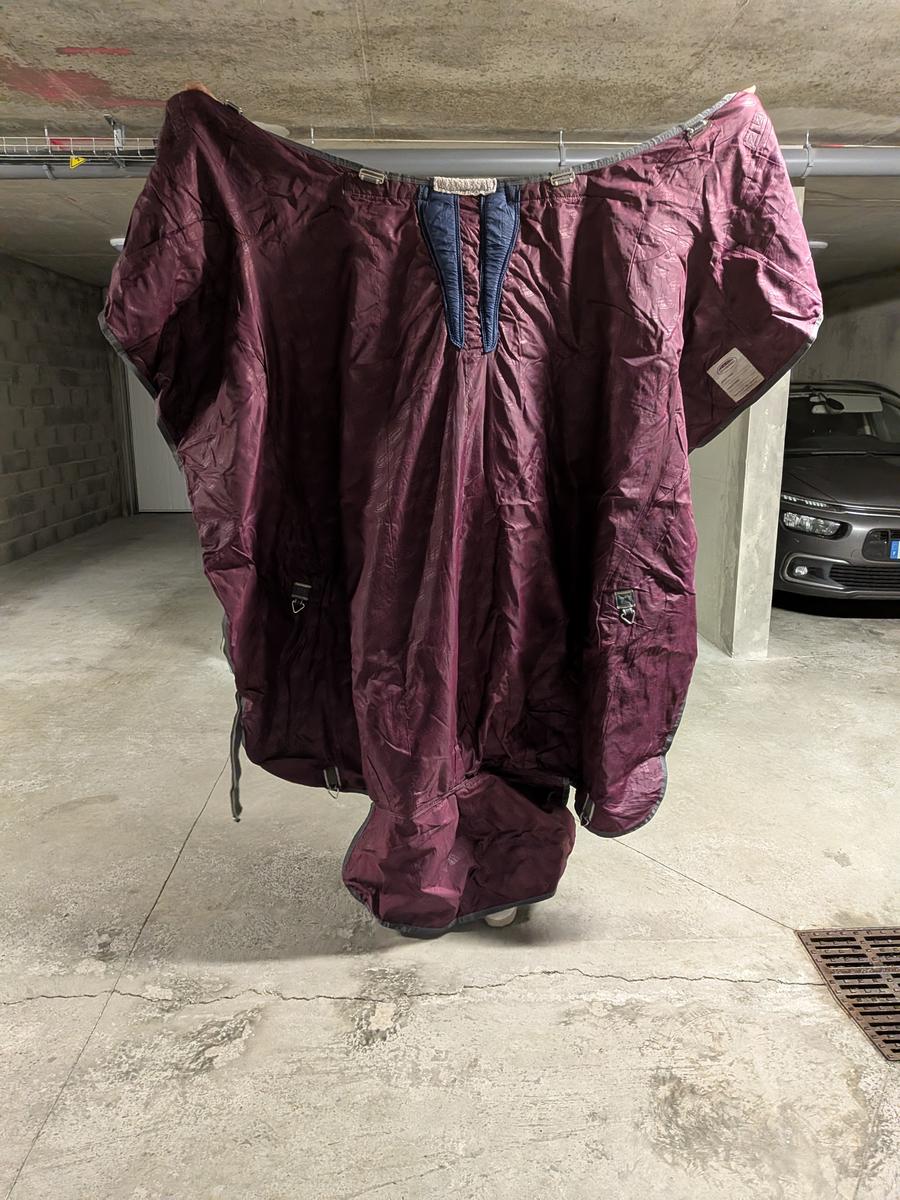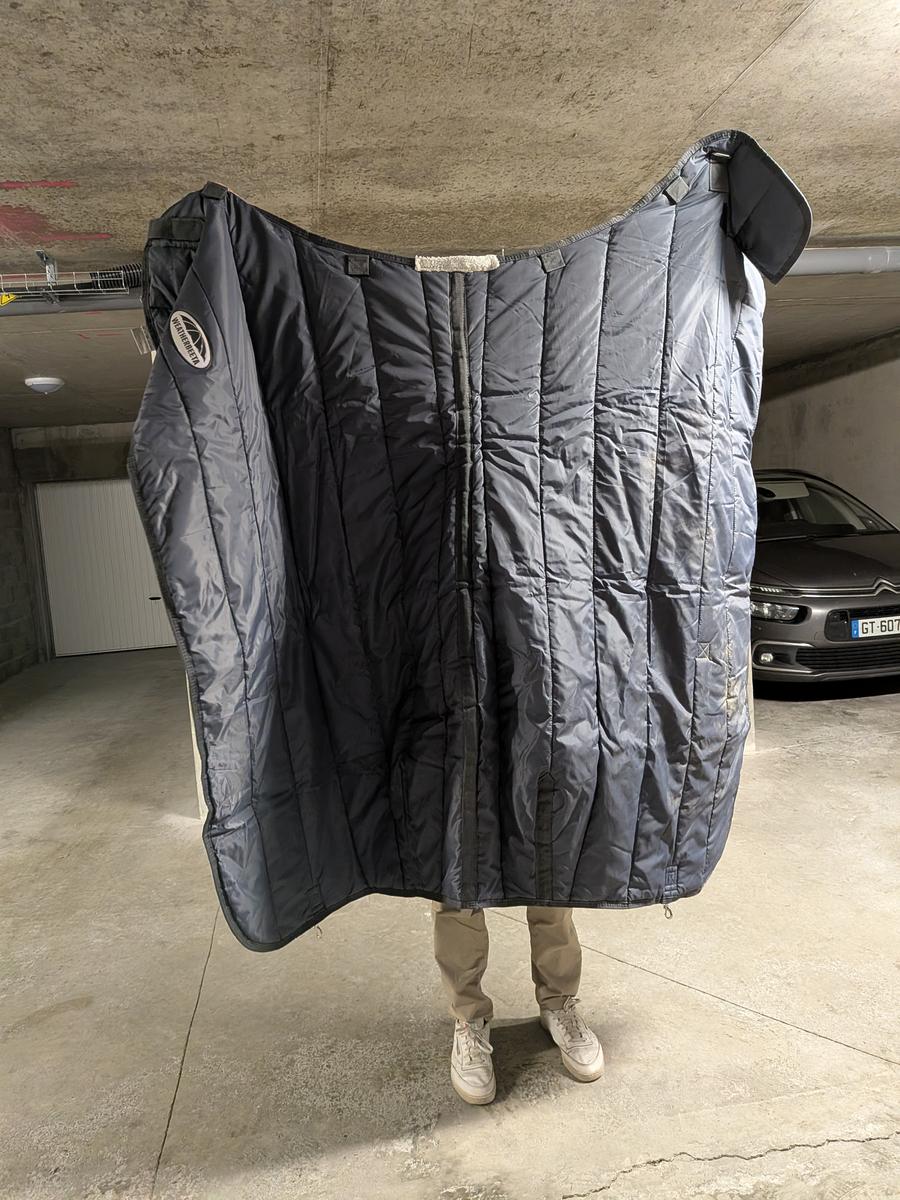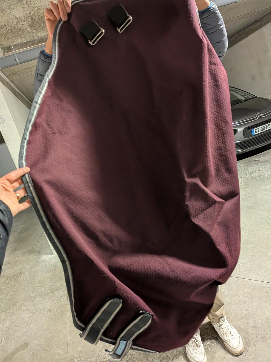 Couverture (avec un légé accro au niveau du garrot, pour les sangles de cuisses faire un nœuds pour les fixer) + couvre cou (a recoudre, voir photo)