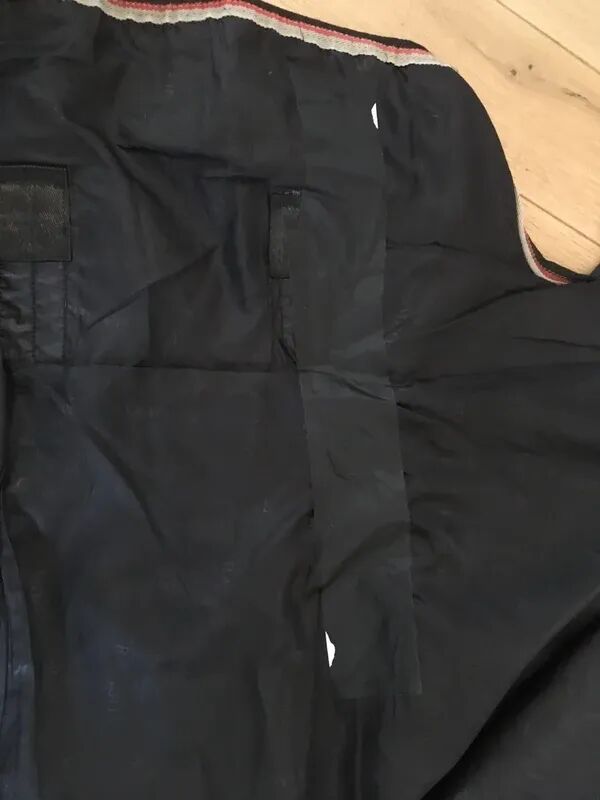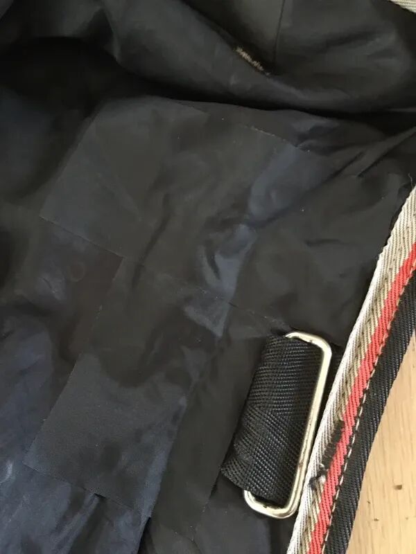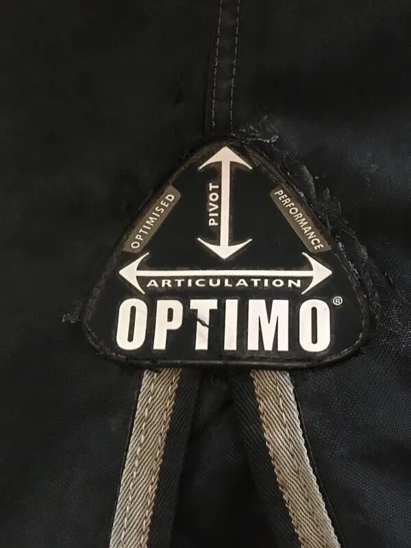 Quelques réparations effectuées sur la doublure intérieure grâce à un scotch autocollant textile noir prévu à cet effet (waterproof, respirant et résistant à l’abrasion). Le résultat est peu visible (voir photos). J ai recollé l’un des logos plastifiés Optimo situé au dessus du soufflet pour ne pas perdre l’imperméabilité à cet endroit !