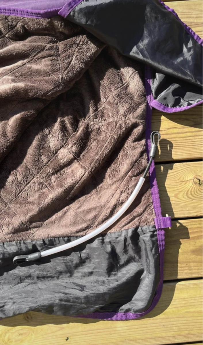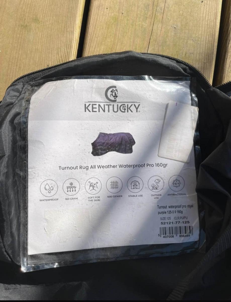 Couverture extérieur imperméable 160g Kentucky Horseware | all weather pro Couleur mauve royal Taille 125 | 5’9 Prix neuf : 224,5€ Très bon état, sera envoyé avec son sac d’origine. « Grâce au revêtement imperméable en PU (ISO 10.000mm), un cheval sec est garanti. Le garnissage de 160 g est en fibre PES, chaude et respirante grâce aux multiples couches dans lesquelles l'air peut circuler. L'intérieur de la couverture d'extérieur All Weather Waterproof Pro est doublée de notre peau de lapin...