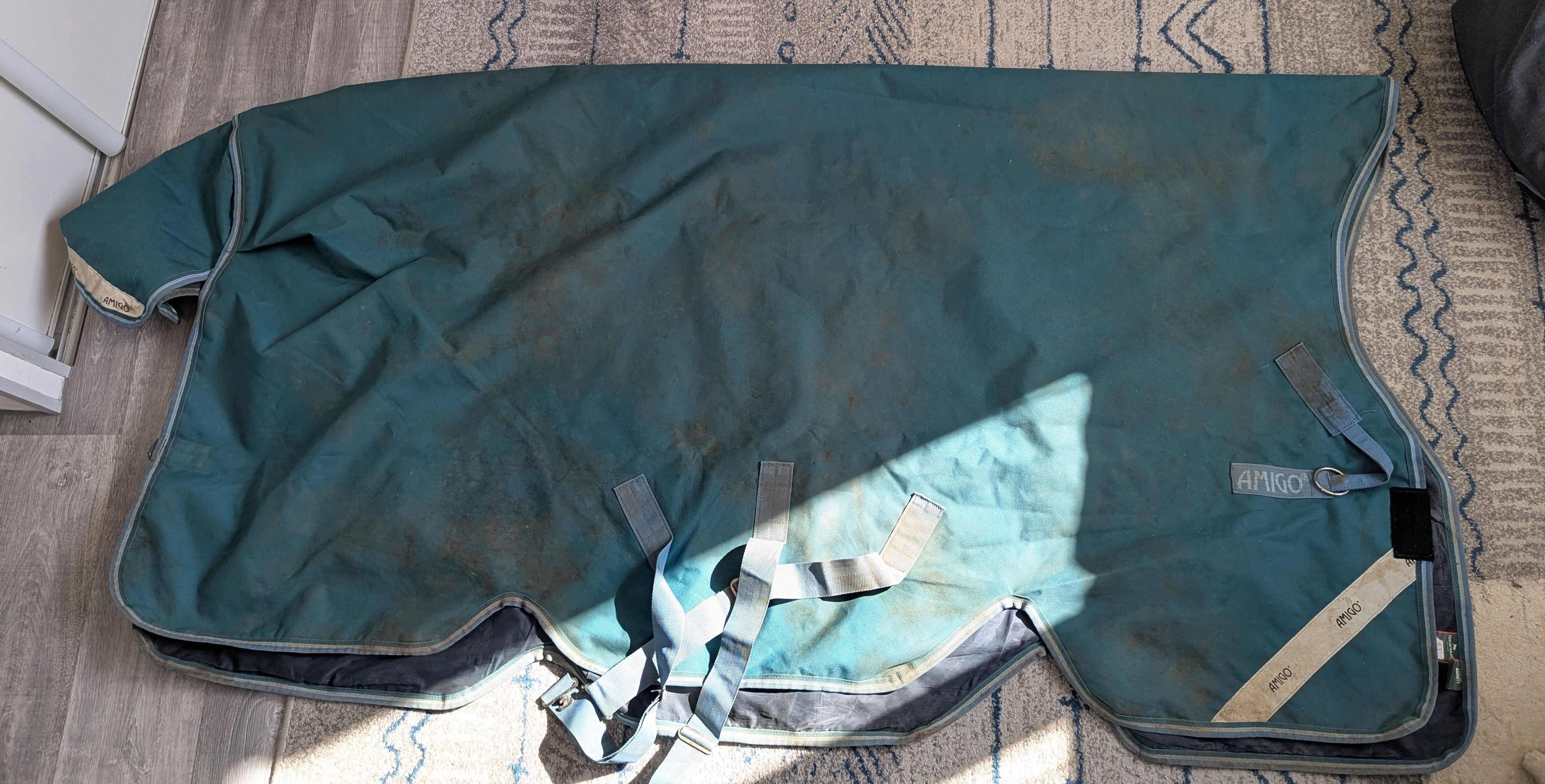 Couverture ayant servi une trentaine de jours. Vendu en l'état (juste brossée, non lavée, pour garder son imperméabilité naturelle). Imperméabilité nickel, aucun accro