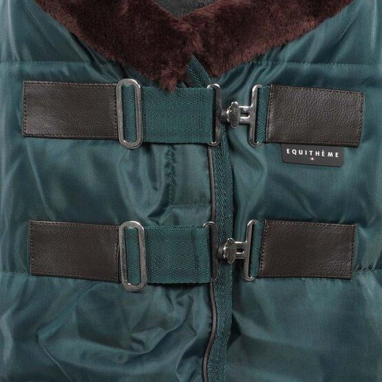 Couverture equithème 200g vert sapin avec col fourrure marron taille 140. Porté une seul nuit