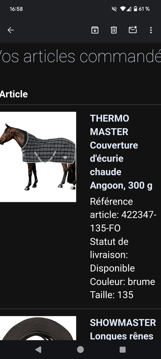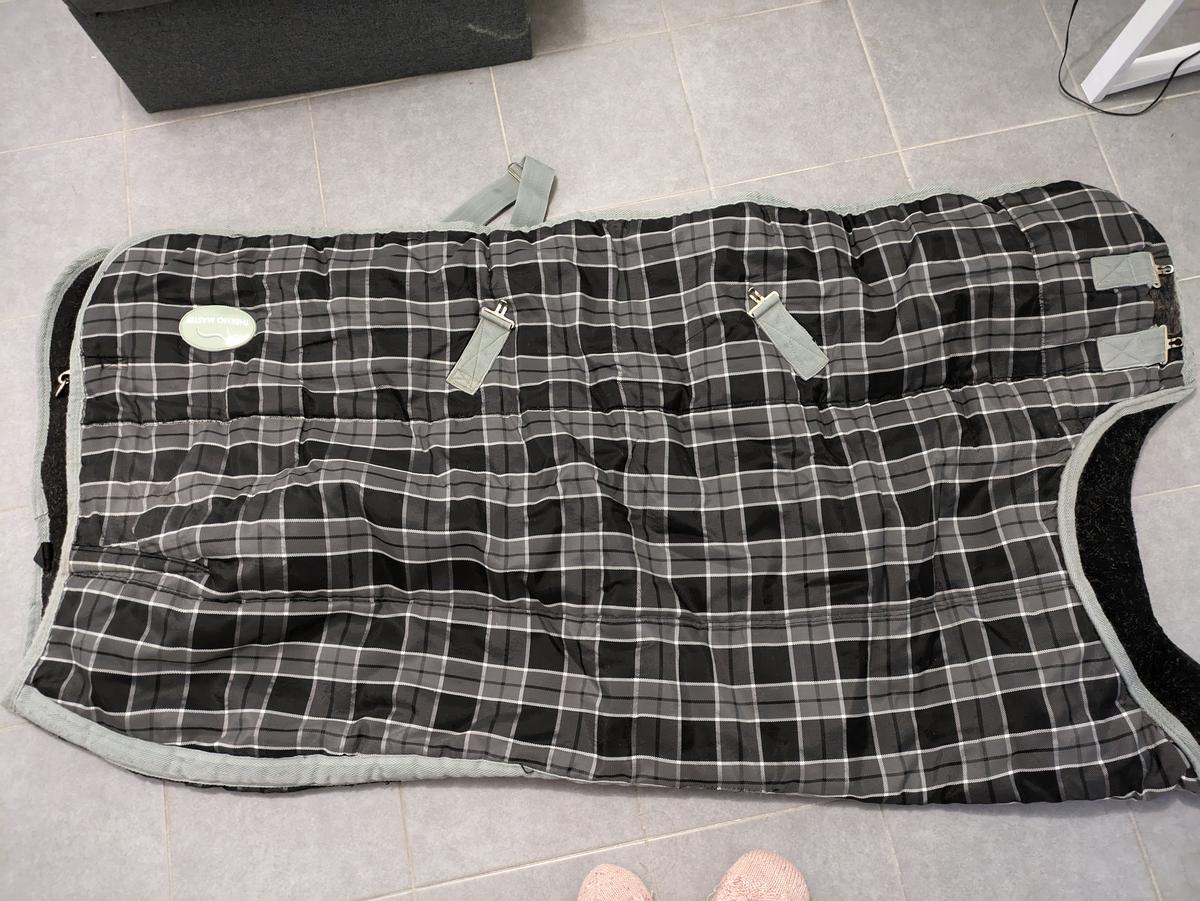 Marque thermomaster ( thermorégulatrice). La couverture possède une avancée de garrot, ce qui est plus confortable pour le cheval.
