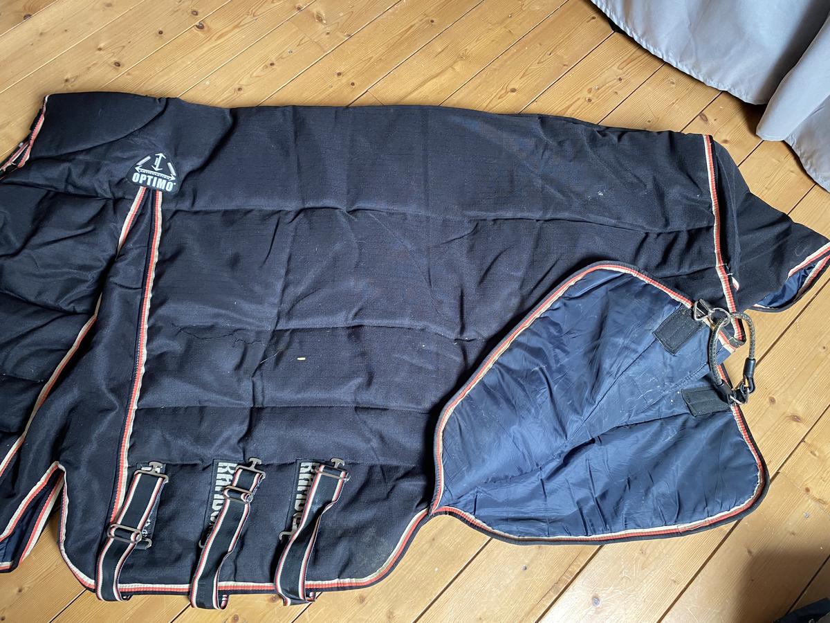 couverture Rambo Optimo 400gr taille 125+ couvre cou 250gr : prix neuf de l’ensemble 280€ -> à vendre 200€. La couverture a été utilisée que quelques mois au box, et stockée dans des housses aspirées dans un dressing. Elle est en parfait état.