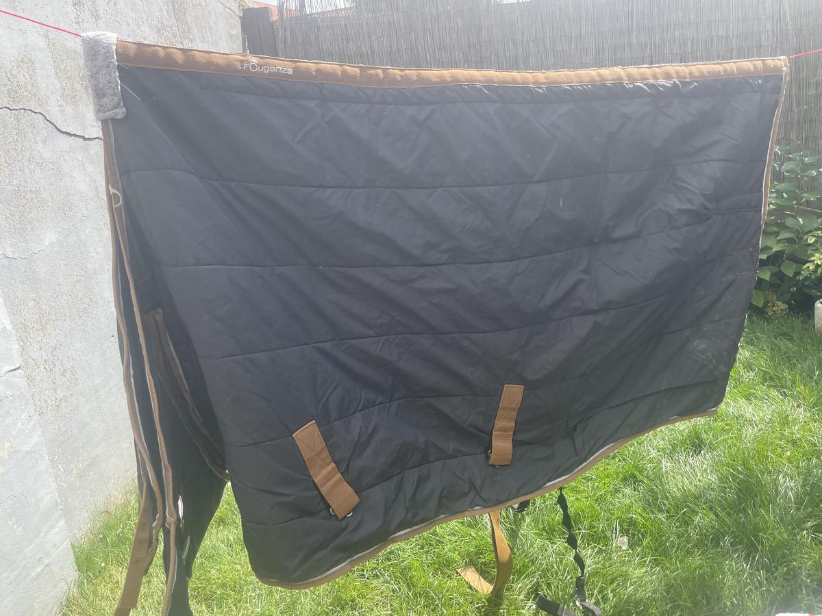 Deux sangle à l’avant, deux en dessous du ventre et deux sous les cuisses