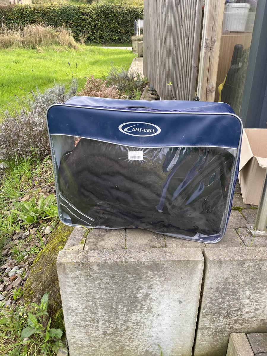 Elle a été mise 3 fois mais trop grande. Elle est donc en excellent état. La couverture a été lavée.