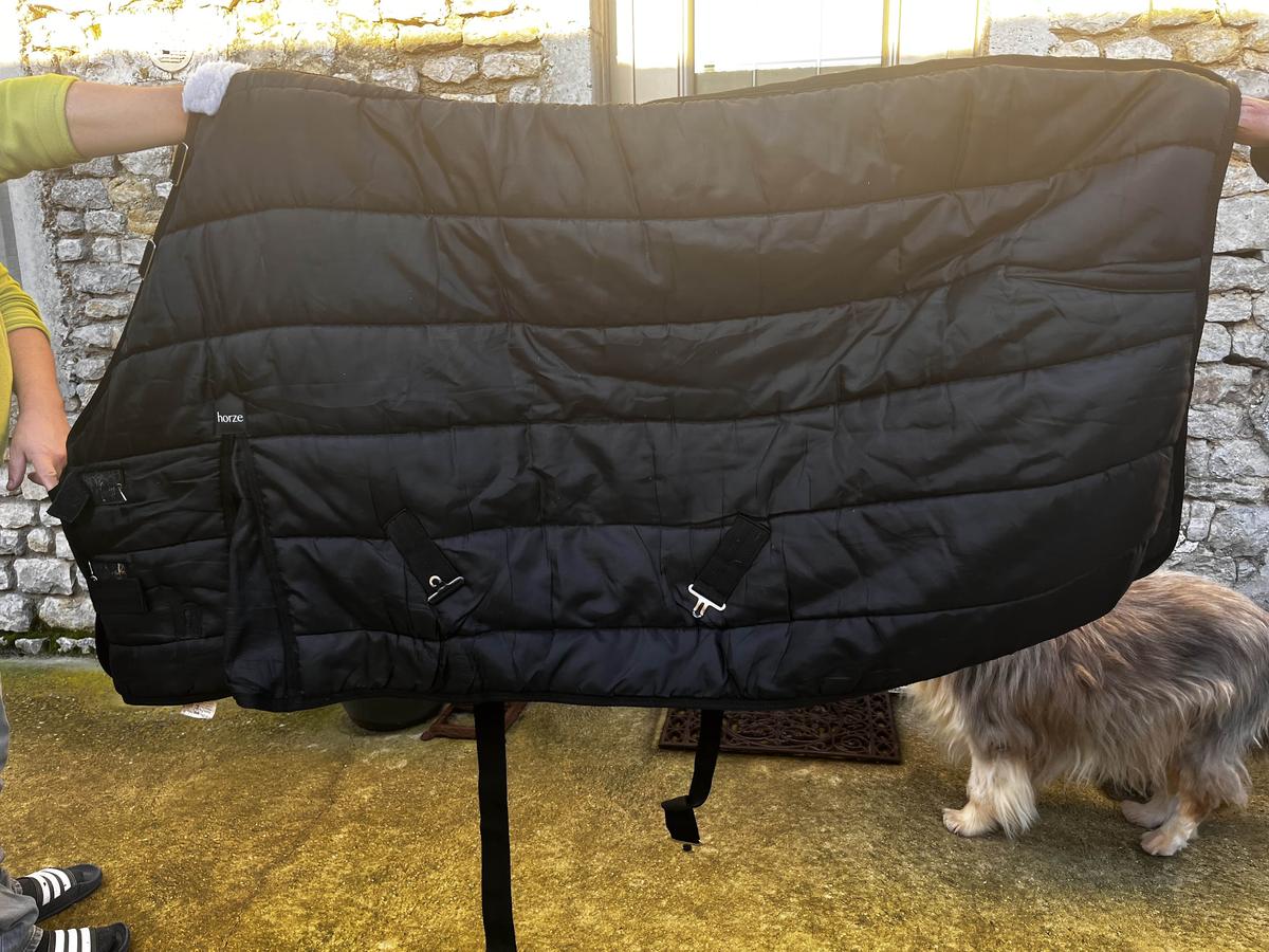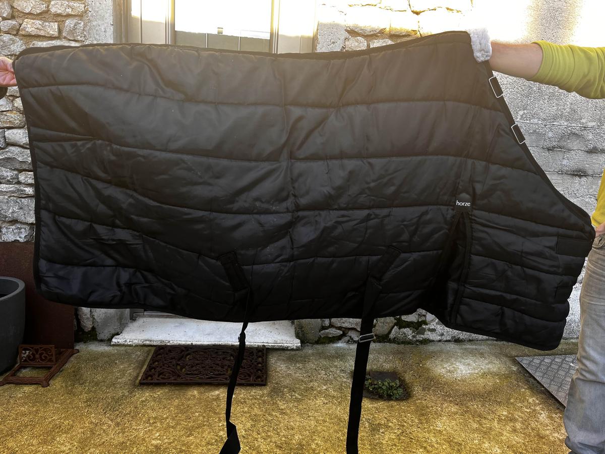 couverture de box taille 125 400g servis un hiver en parfait état. Aucun trous, signe d’usure ect, a été laver Il y a des attaches pour un couvre coup, si besoin, d’en rajouter un