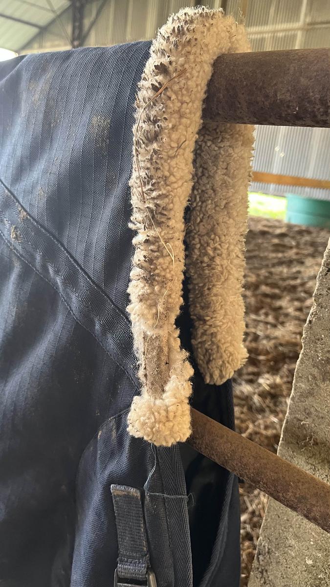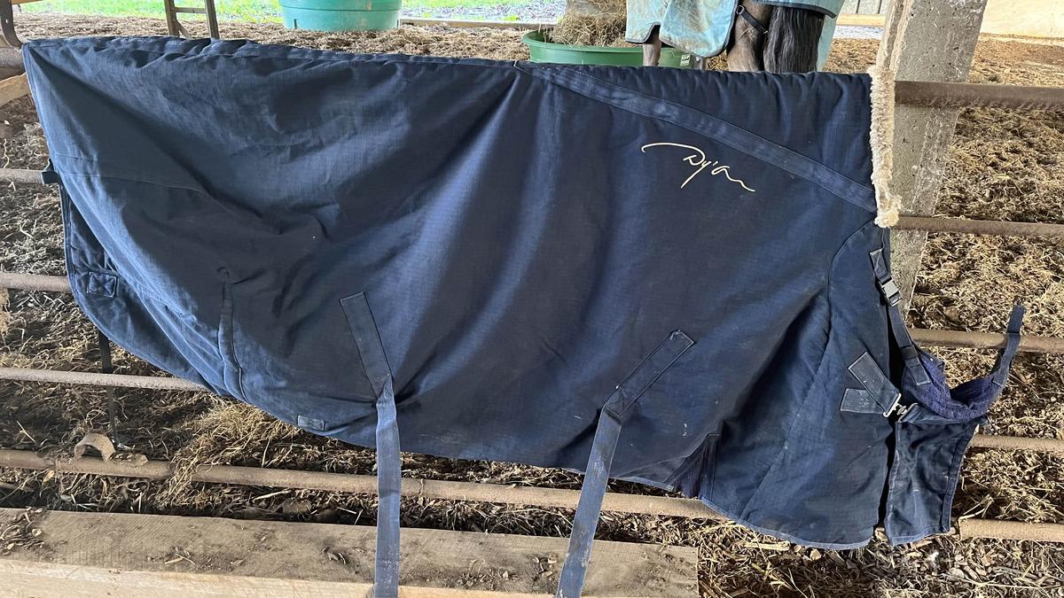 À vendre couverture Dyon 350g Taille 145 (taille plutôt grand) Bon état général Quelques petits défauts: - le mouton au garrot est un peu abîmé (photo 5) - tout petit accro doublure intérieur au garrot (photo 6) - une couture au niveau d’une sangle s’est décousue mais la sangle tient encore très bien (photo 7) Vente à regret la couverture est devenue trop petite Prix neuf: 209€ Prix de vente: 50€ Caractéristiques de la couverture: • Couverture d’hiver en 1200 denier Rip-stop • Matelassure : 350 grammes • Fermeture sur le poitrail par un empiècement amovible avec large partie supérieure élastique, maintenu de chaque côté par une boucle acier et sangles ajustables en nylon • Avancée sur l’encolure avec protection en mouton synthétique • Découpe exclusive « V - neck » au garrot • Sangles croisées sous le ventre - Sous cuisses amovibles
