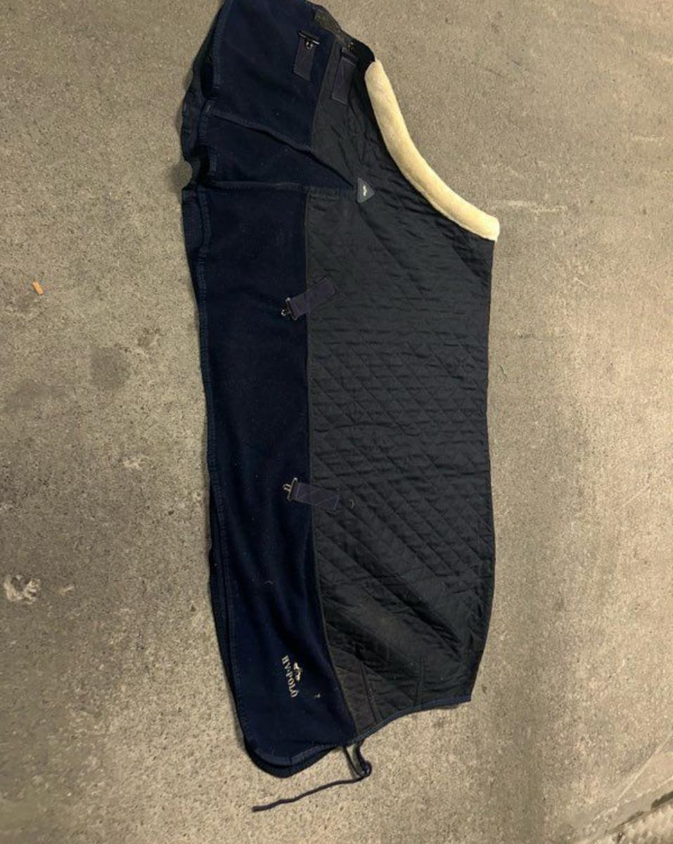 Je vends ma couverture de box de la marque HV polo, bleu marine, 145 cm (taille petit), avec un col en moumoute, la couverture est en très bon état. En revanche il n’y a plus de sangle ventral, mais celle-ci peuvent se racheter (pour pas cher) à l’unité étant donné que les attaches sont des deux côtés de la couvertures :)