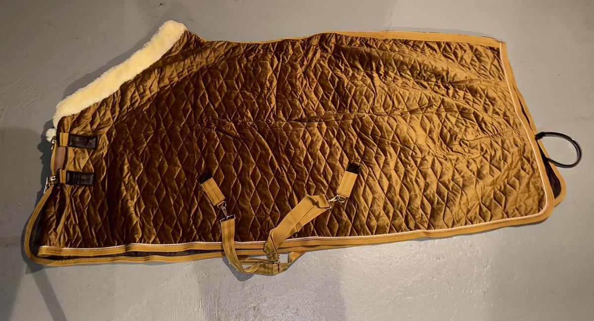 couverture Kentucky velvet moutarde de présentation de box taille 155cm neuve 160gr