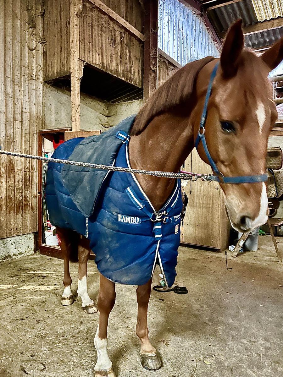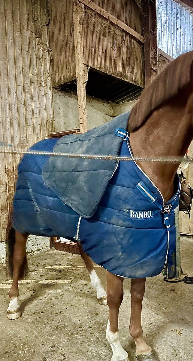 Très bon état (aucun trou, aucune couture qui s’enlève, rien de notable), je l’ai mise à mon cheval pendant 2 hivers.