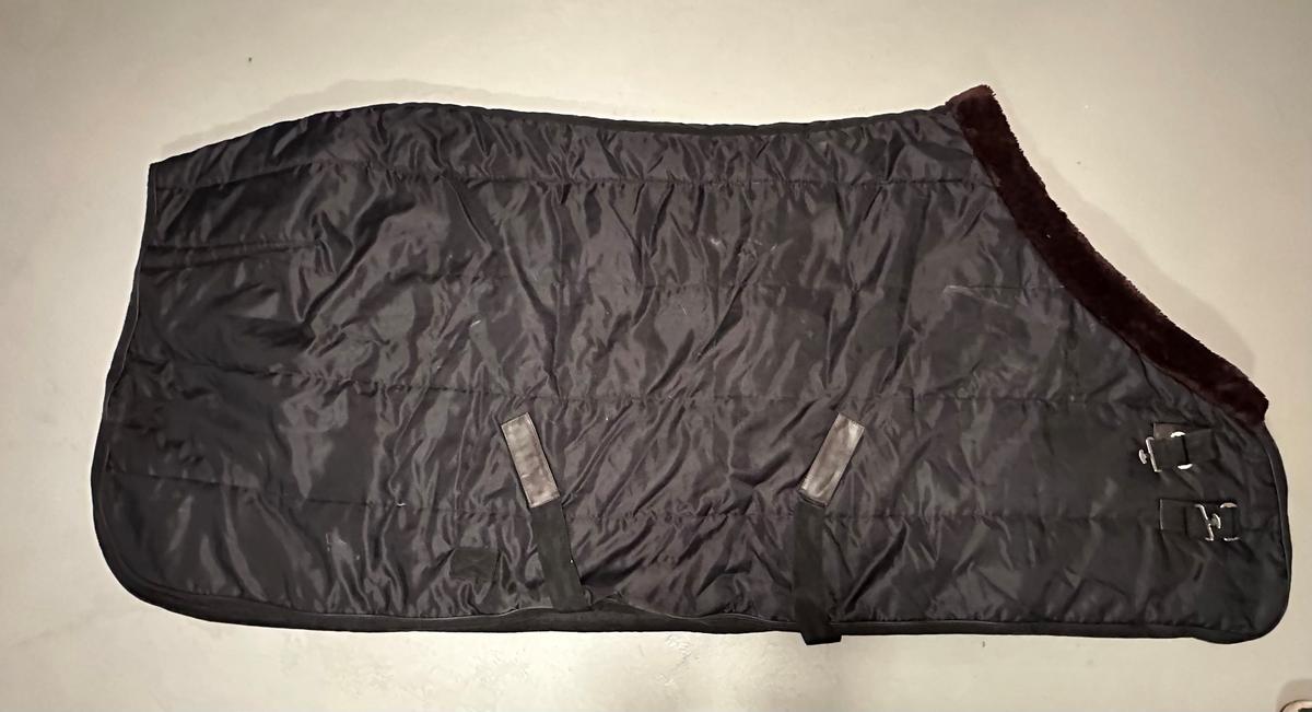 EQUITHEME – Couverture d’écurie Teddy 420D 200gr Noir équipée d’un contour mouton synthétique Choco!