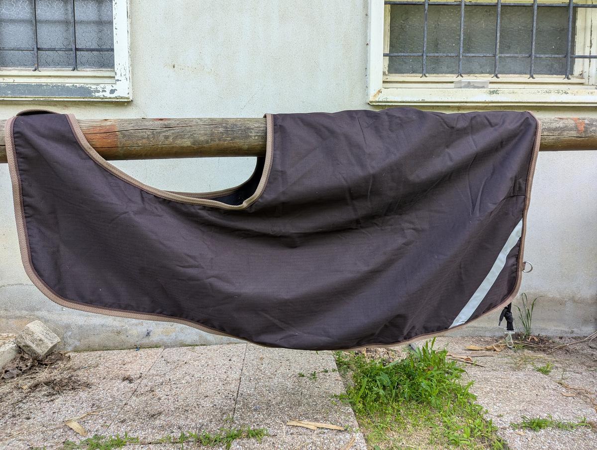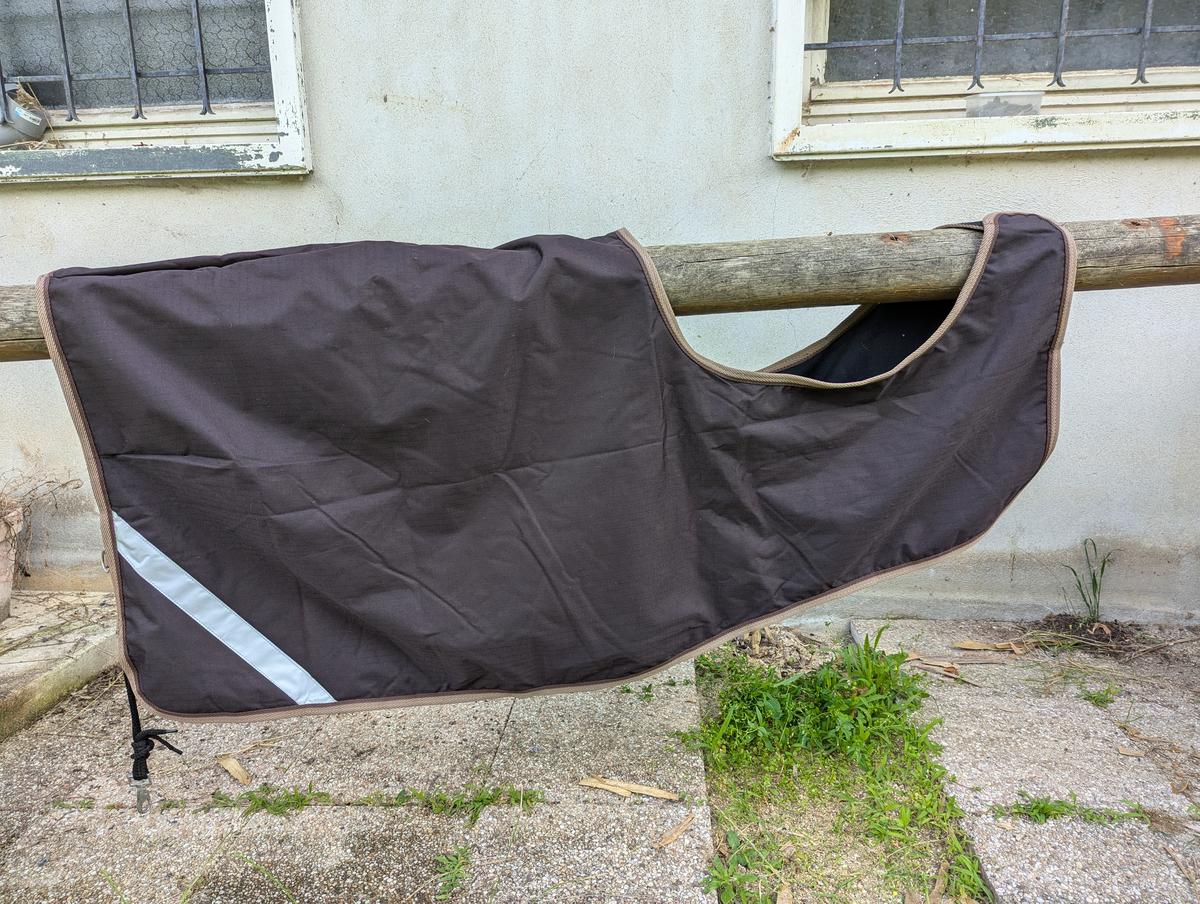 Couvre reins imperméable doublé polaire avec bande réfléchissante.