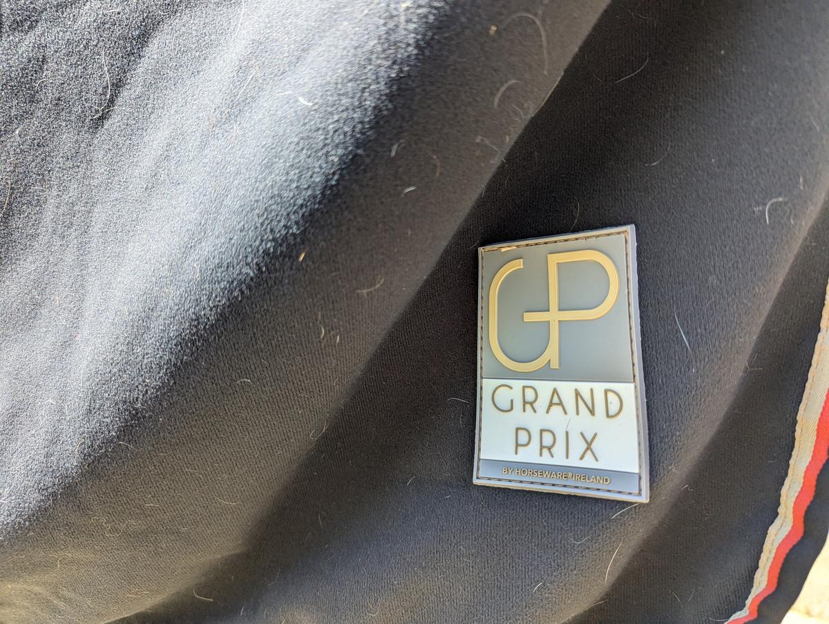 Couvre reins GP horseware noir doublé a carreaux en 140cm avec un logo sur un côté