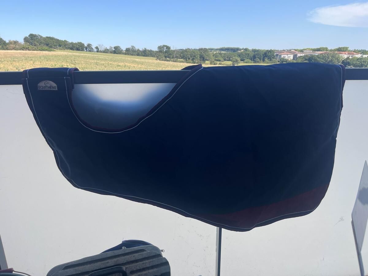 Je vend ce couvre rein equitheme taille 125. Utilisé moins de 10 fois. Il est bleu marine avec les liserer bordeaux. Vendu dans sa housse.