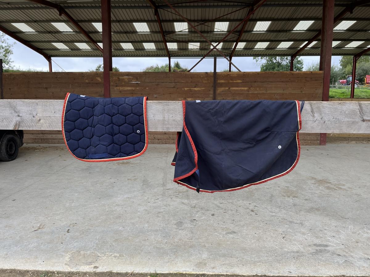 Bonjour, À vendre : couvre rein de la marque Equ’idée. Couleur : bleu marine avec liseré doré et terracota Taille : full Vendu séparément Prix couvre rein : 50€ Possibilité d’Ensemble avec le tapis : 90€ N’hésitez pas pour plus de renseignements et de photos à