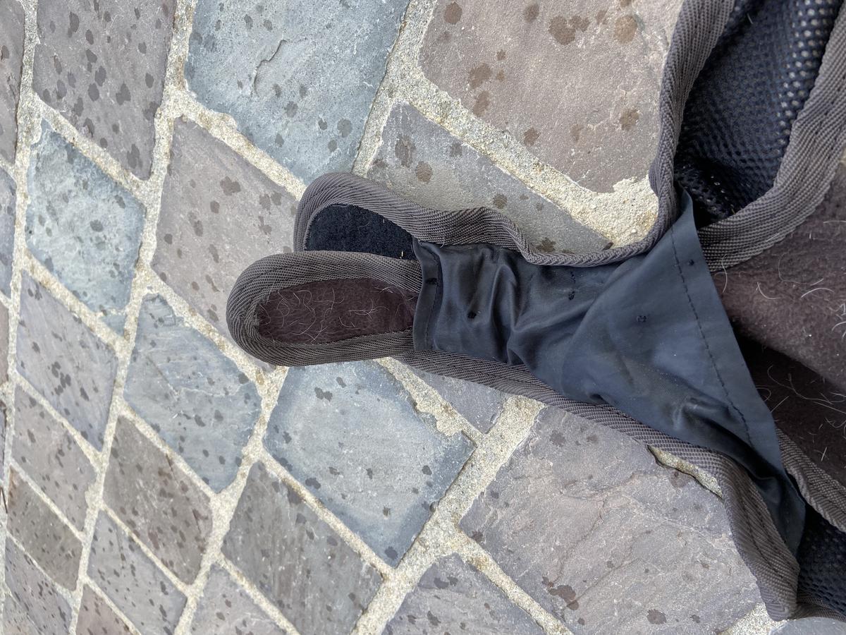 Couvre reins convenant à un poney D en très bon état, quelques poils blancs sur la partie polaire.