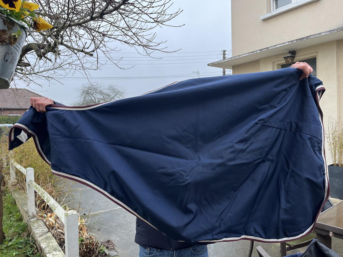 Couvre rein en très bon état imperméable intérieur polaire avec corde pour passage de queue