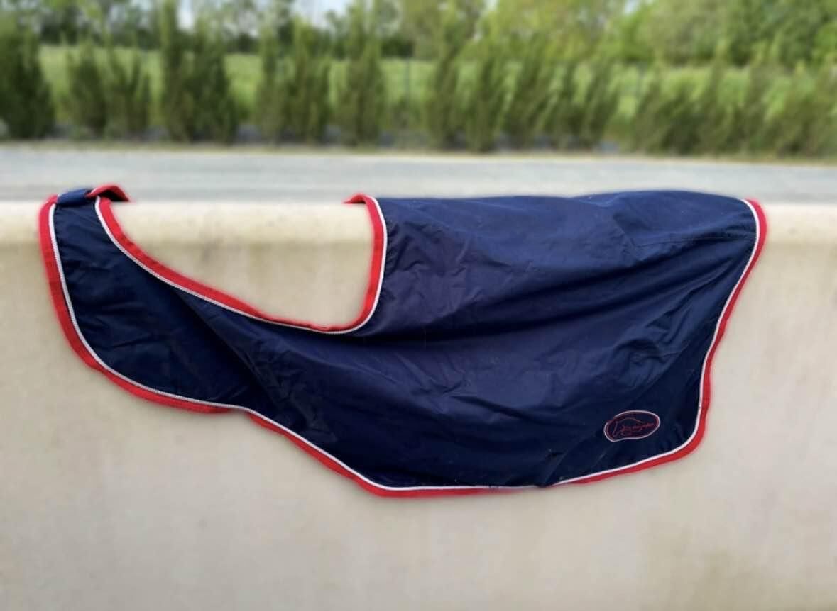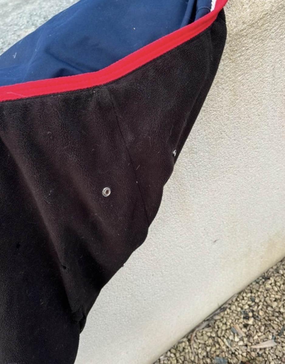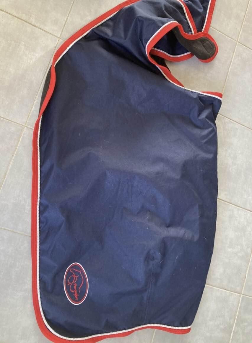 en bon état, imperméable à l’extérieur et moumoute à l’intérieur, taille unique (convient autant à un cheval qu’un poney)
