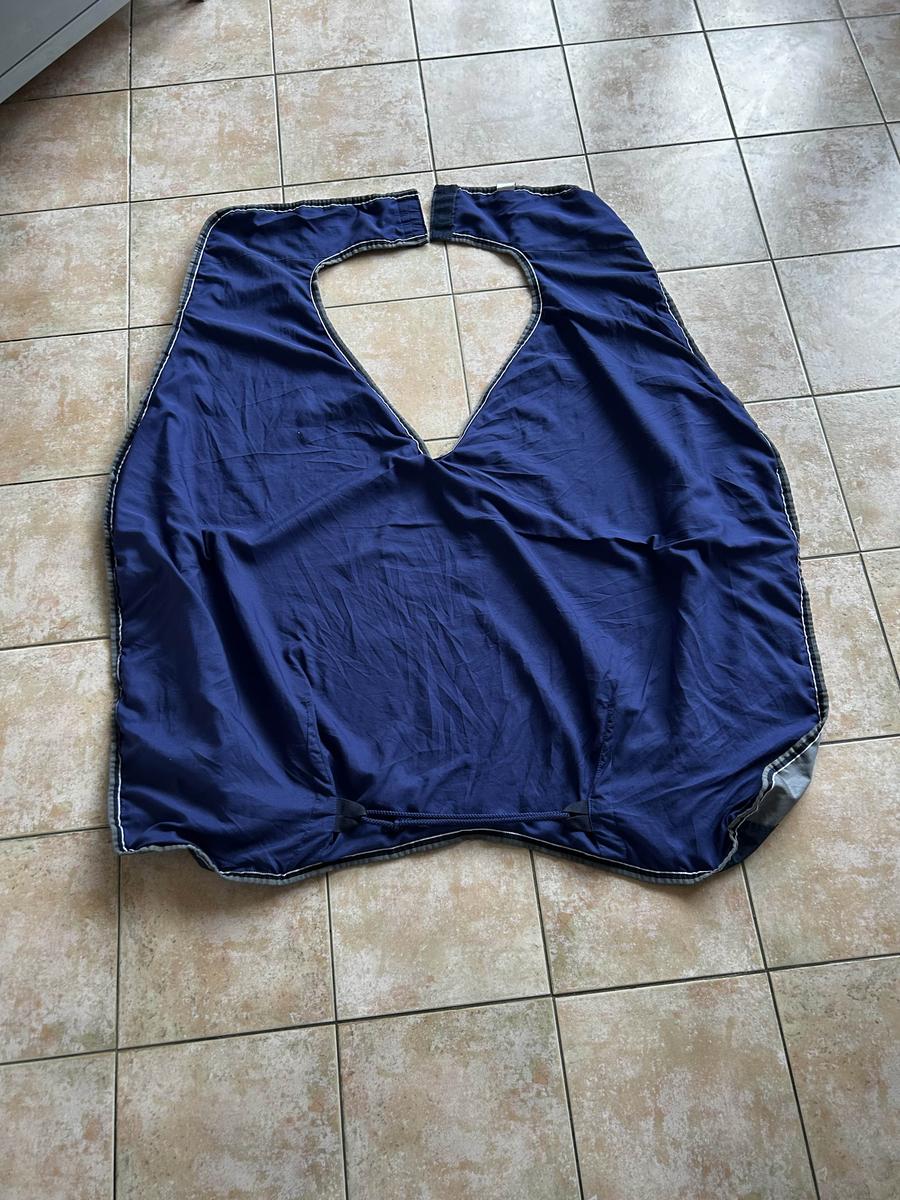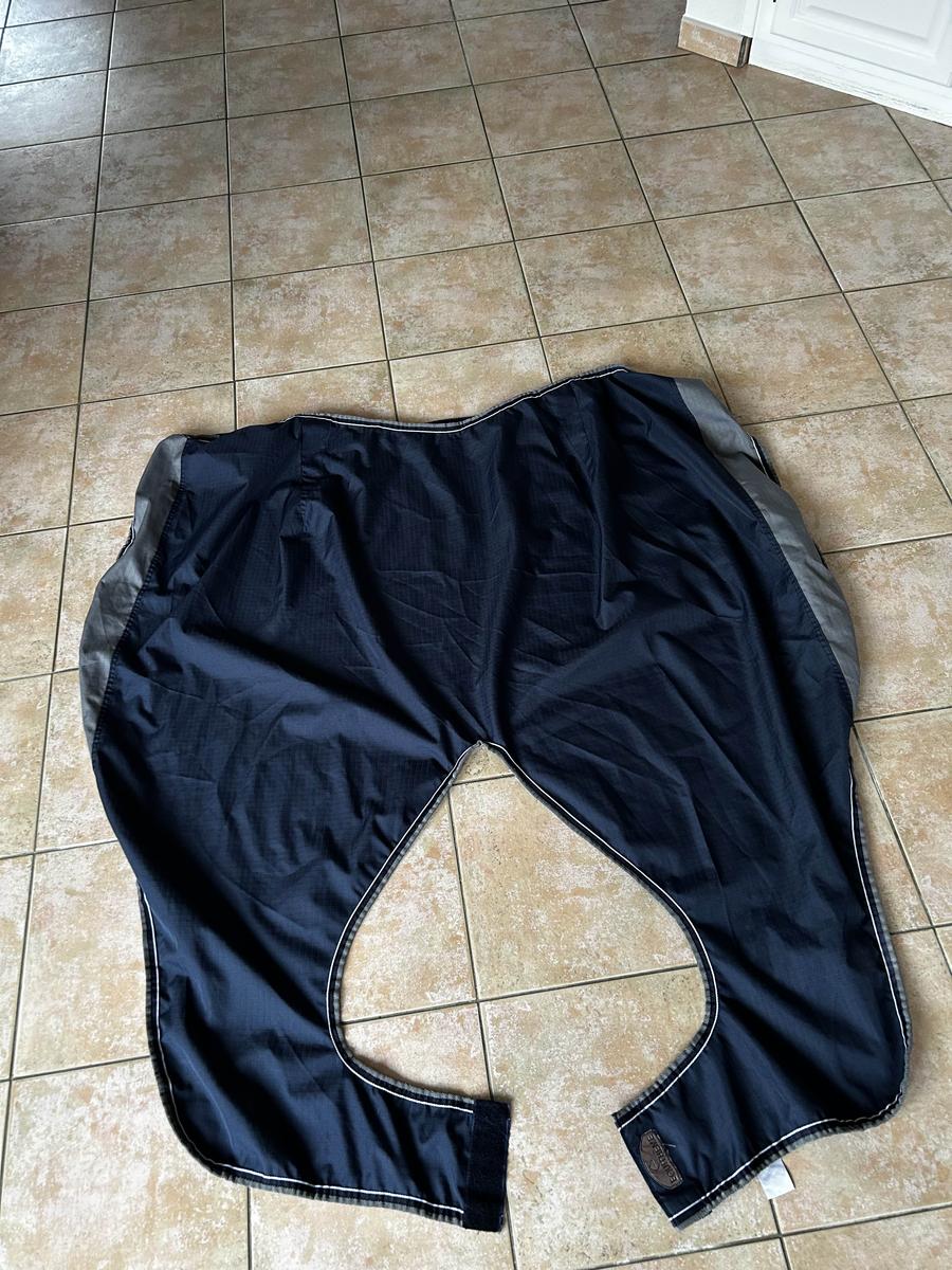 Vends couvre reins Equitheme imperméable doublé. Très peu servi La taille est effacée mais ma jument fait 1.66 au garrot