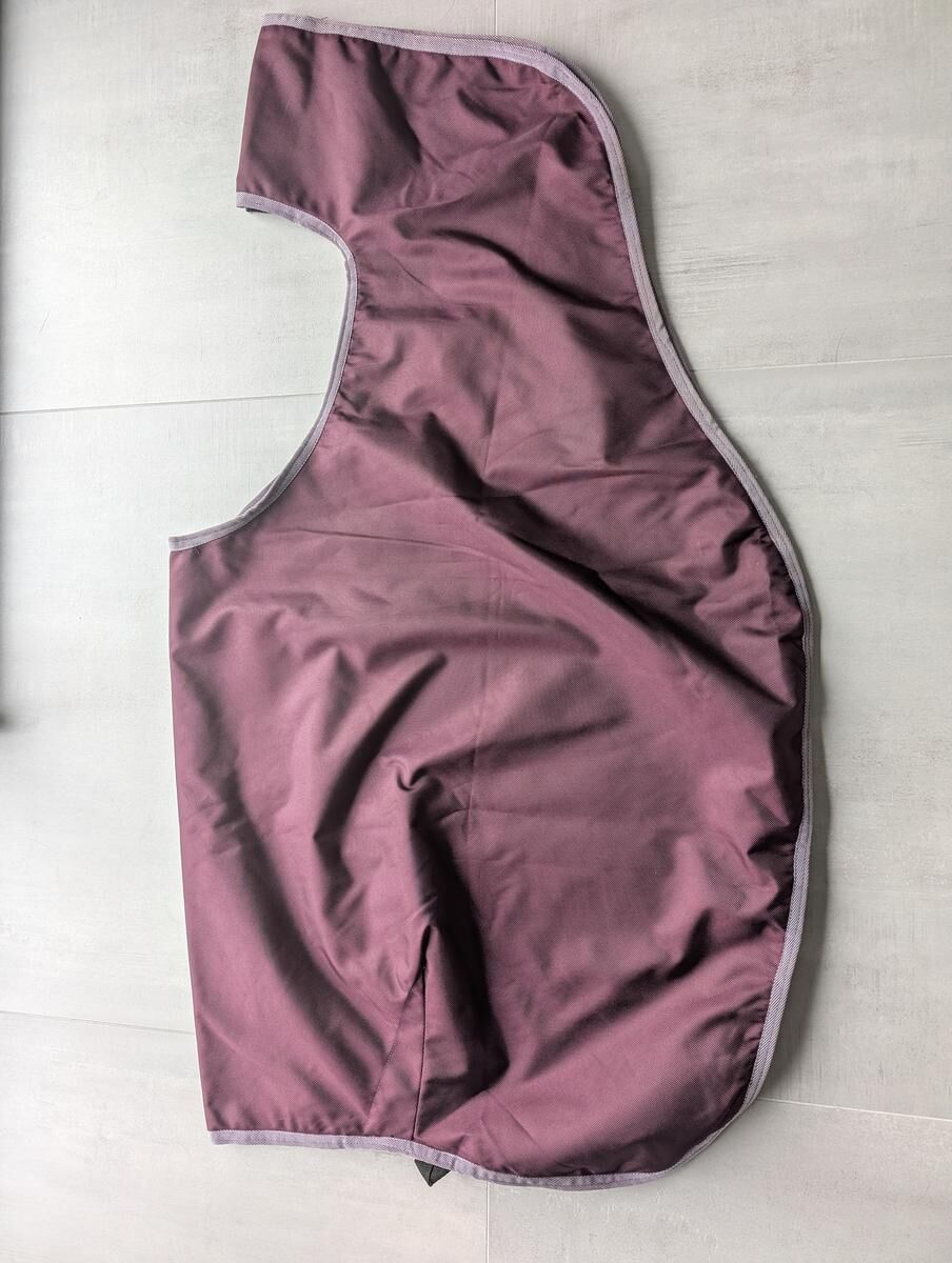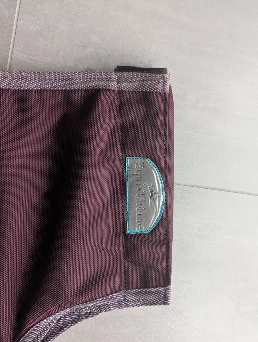 Couvre rein imperméable couleur aubergine/bordeaux, intérieur en nid d'abeille, de chez Equitheme en taille 140cm.