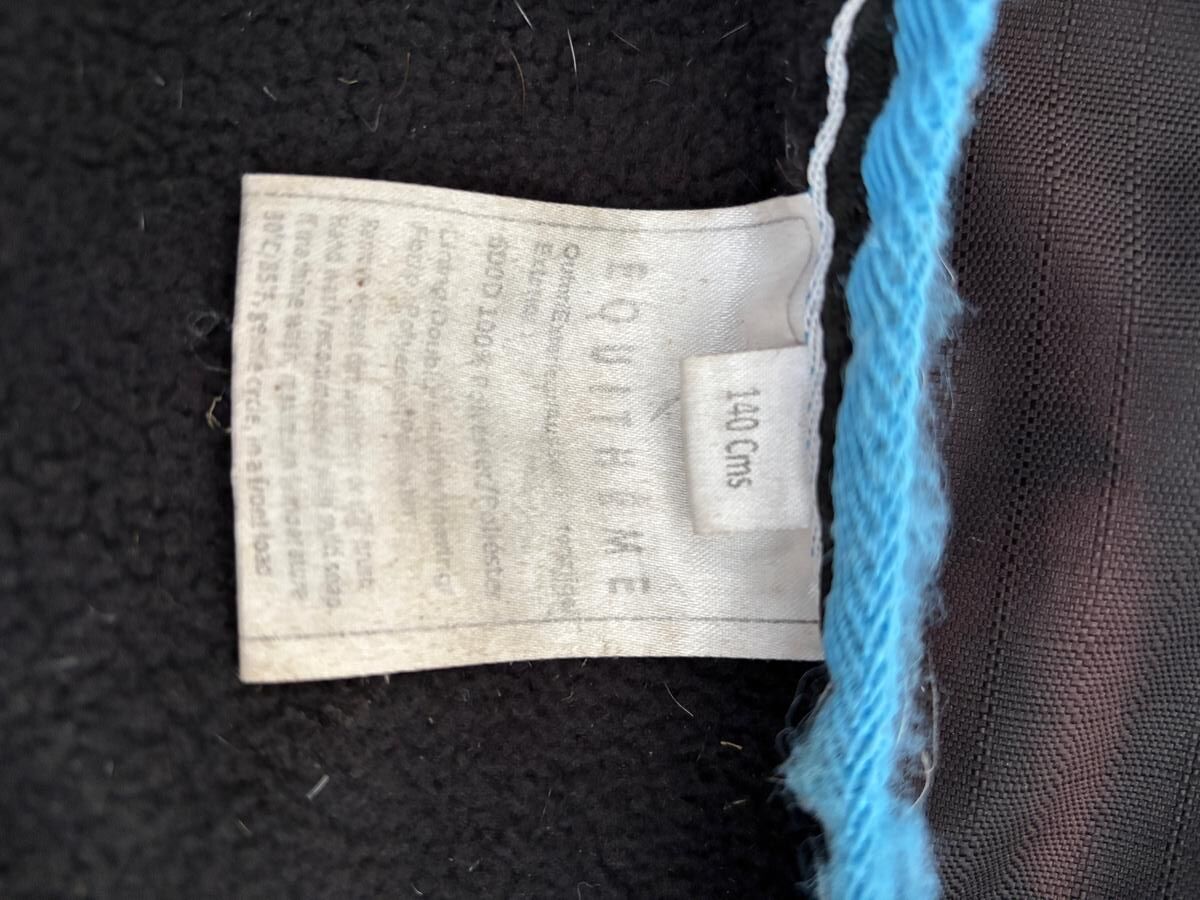 Couvre-reins Equitheme imperméable doublé polaire noir et bleu.