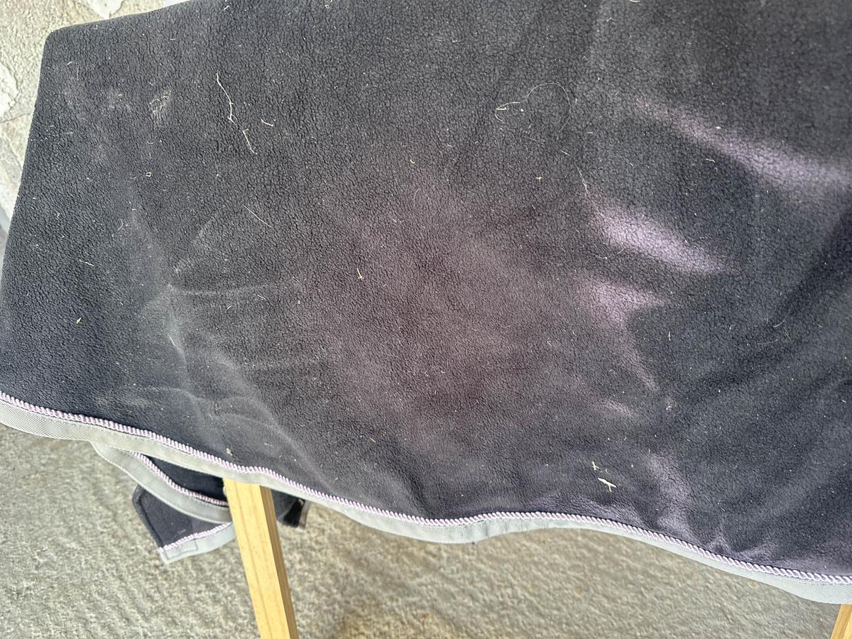 couvre rein noir, Liserai Rose, légère, décoloration avec le soleil, d’un côté du couvre rein.