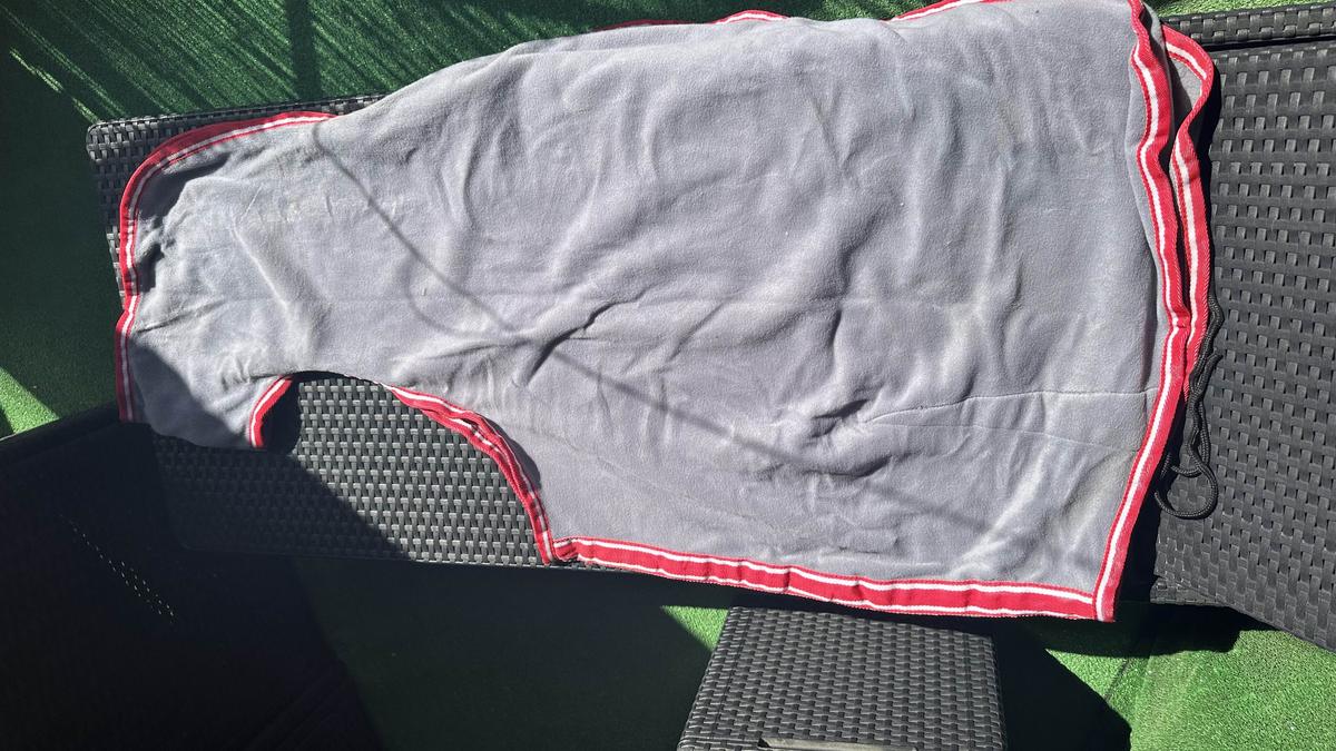 Couvre rein polaire Equitheme gris et rouge, porté qu’une fois en très bon état. Taille poney (125cm)