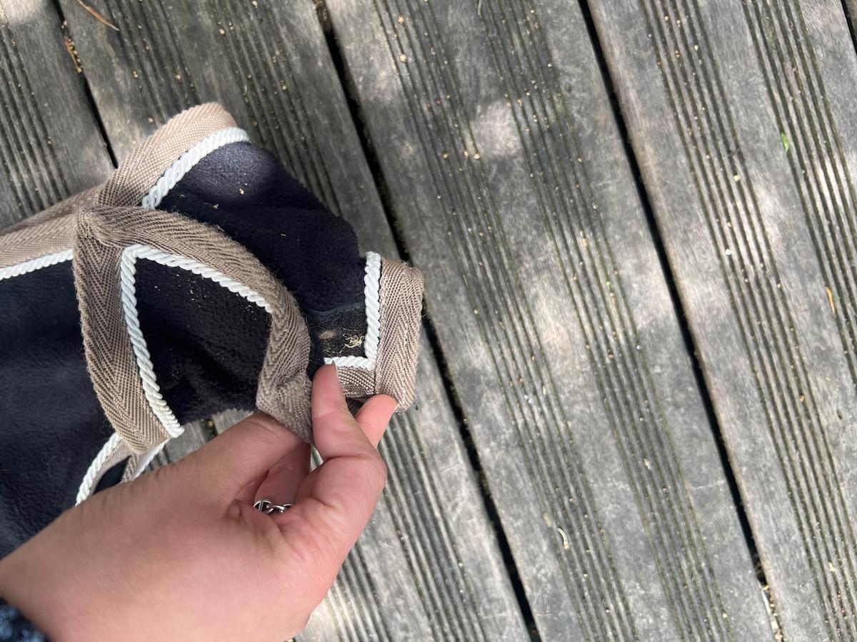 Couvre Rein Equitheme - Taille 140 (correspond plutôt à un 135) - Noir et liserés taupe et crème. Tb état - en coton - PAS imperméable