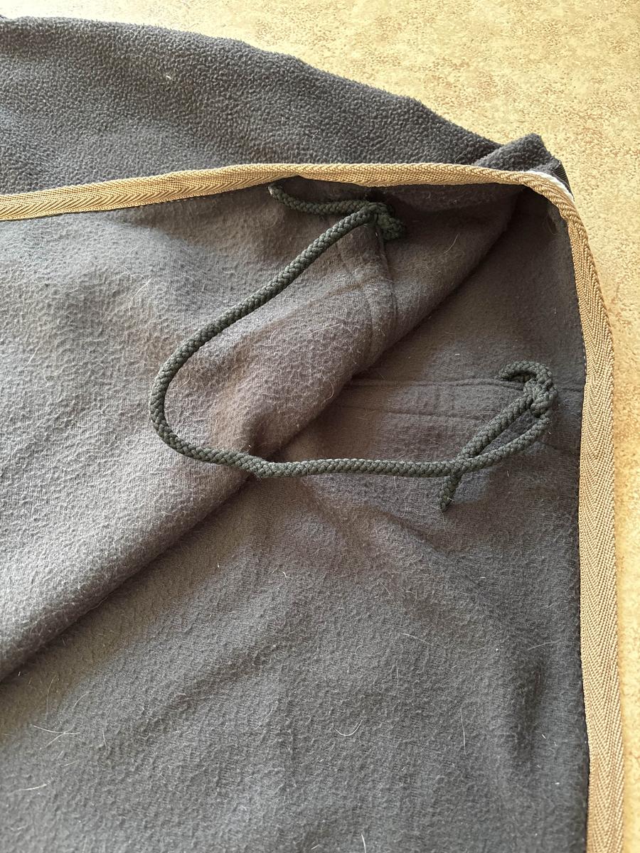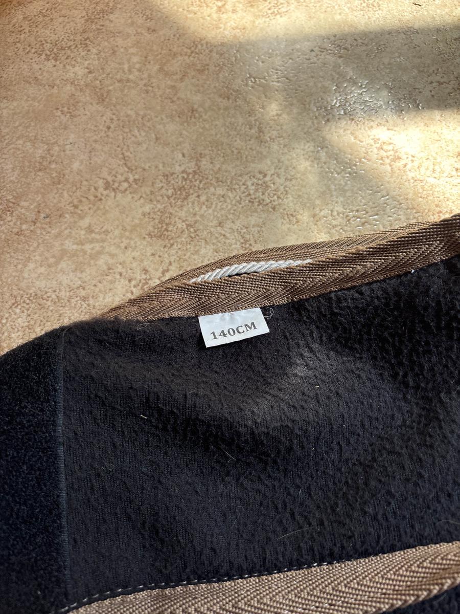 Vends couvre reins de la marque Equitheme en taille 140cm de couleur noir avec bordure marron et liseré blanc
