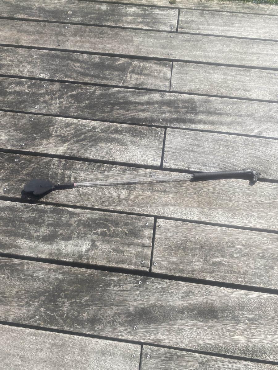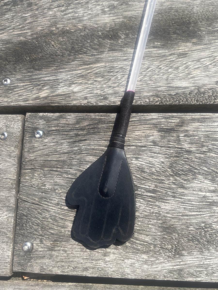 Utilisé plusieurs fois, la cravache était rose à l'origine, on peut voir quelques traces de tissu rose sur le bas de la cravache (voir dernière photo), mais est maintenant noire et translucide, (ne change rien à son utilisation).