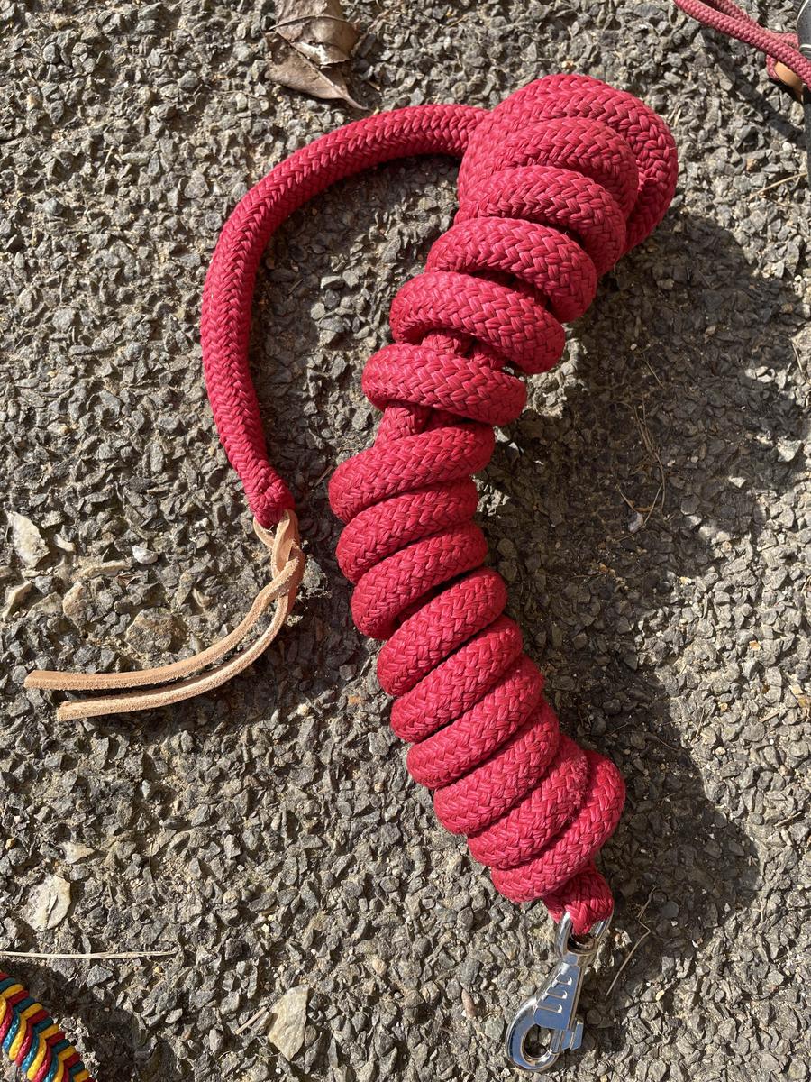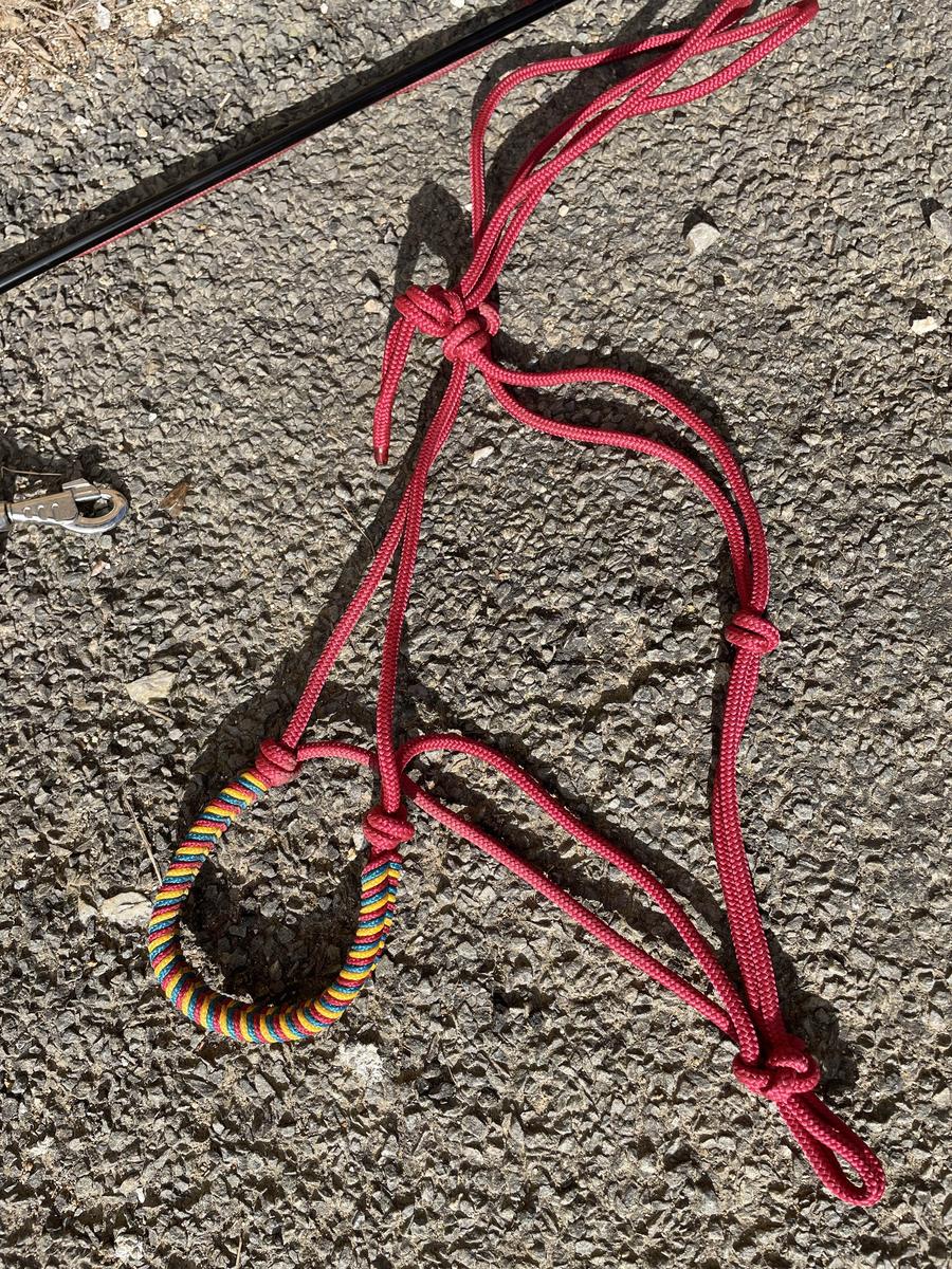 ensemble de matériel de travail à pied taille cheval avec longe licol et stick. très peu servi. Ils ont été fait chez autour du cheval