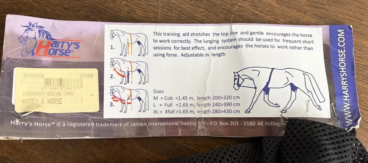 enrênement Canter Soft Rope noir et blanc de la marque Harry’s Horse taille XL et très peu utilisé prix neuf : 19,90€