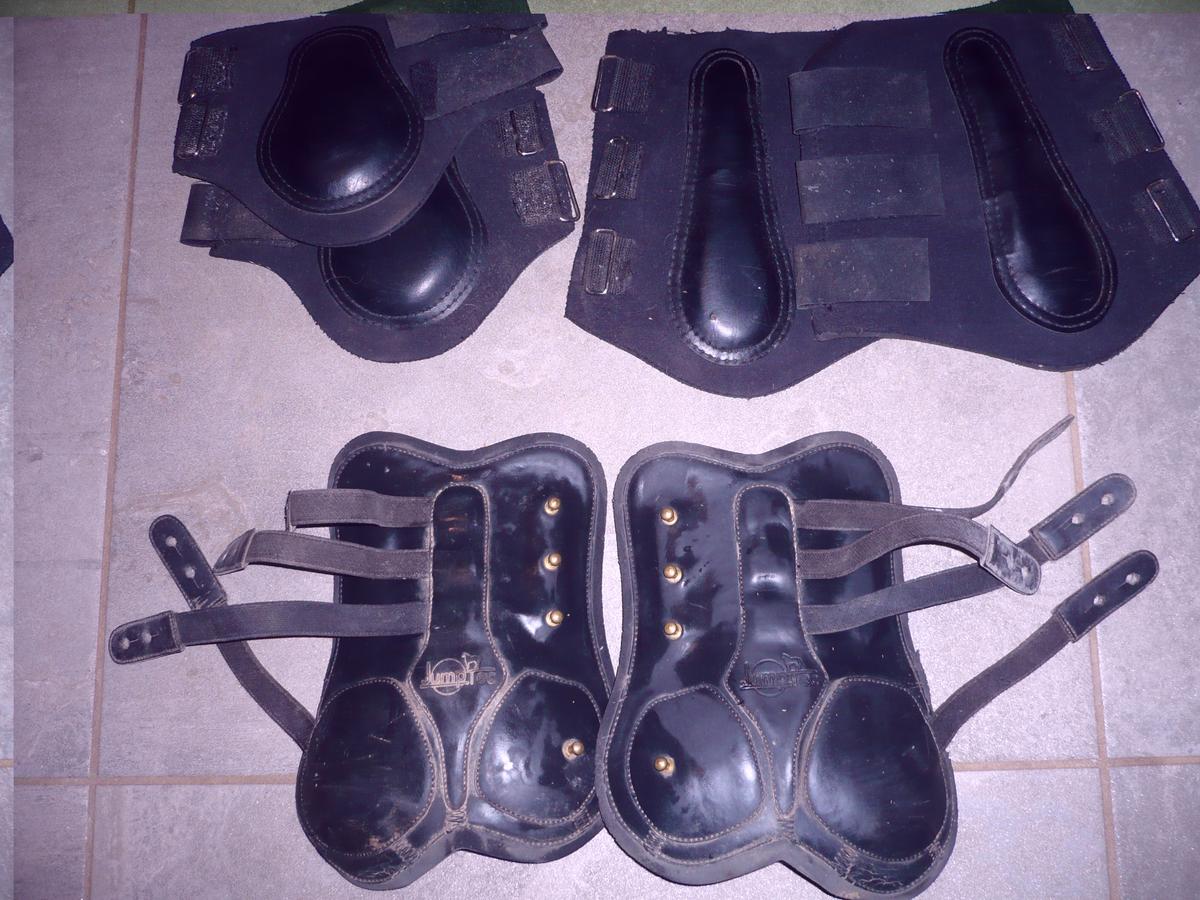 1 paire de guêtres antérieures et 1 paires postérieures à scratchs taille cheval (en parfait état): 15 euros l'ensemble
