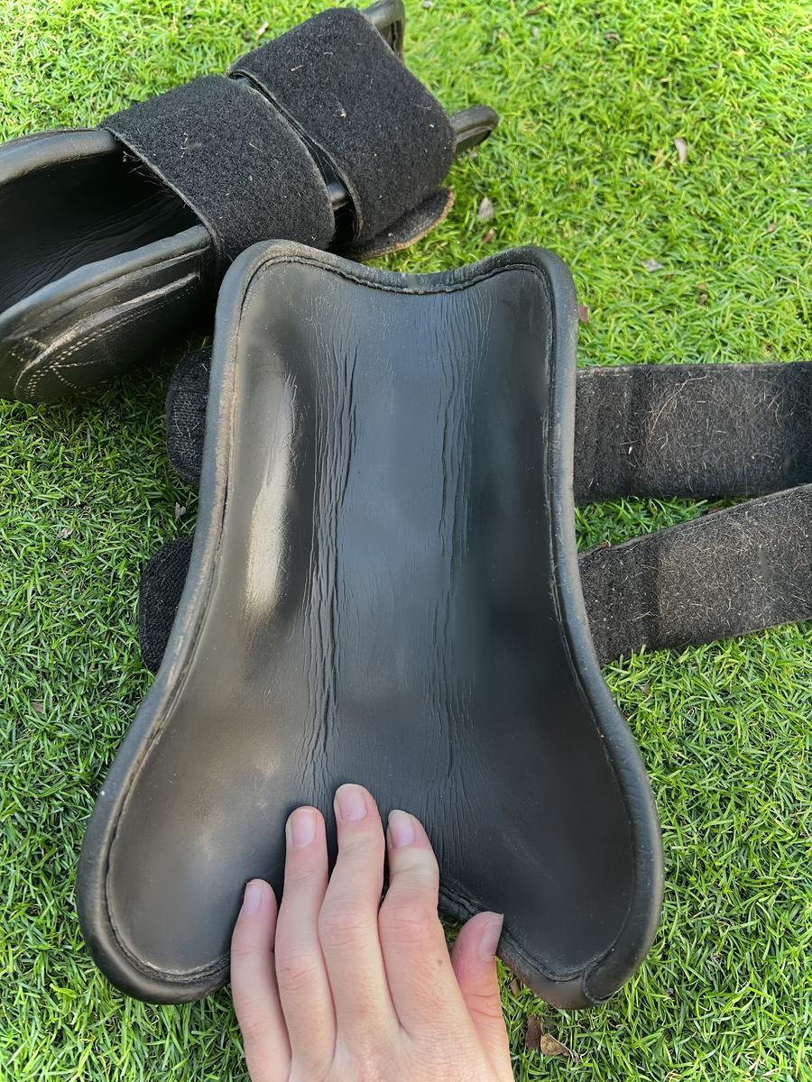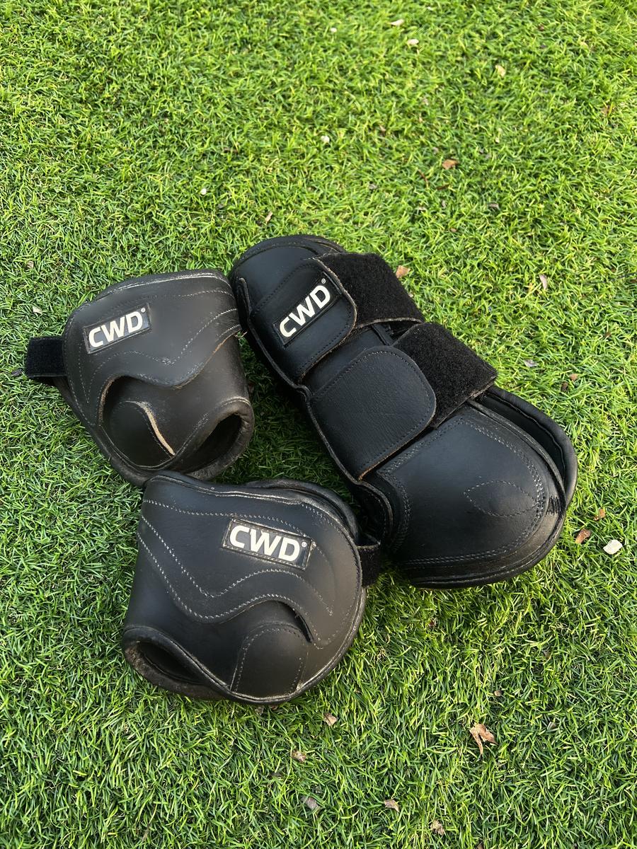 Je met en vente mes guêtres et protèges boulets en velcro CWD noir en cuir véritable.