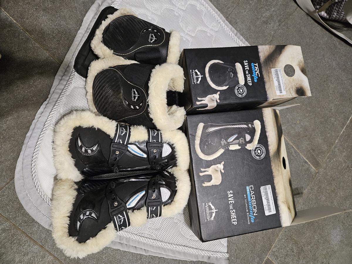 Vends guêtres et protège boulet, marque veredus taille L cheval, porter 5 fois max. Quelques traces de frottement sur l'intérieur. Sinon en parfait état.