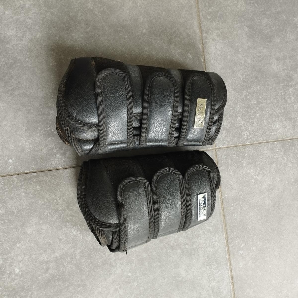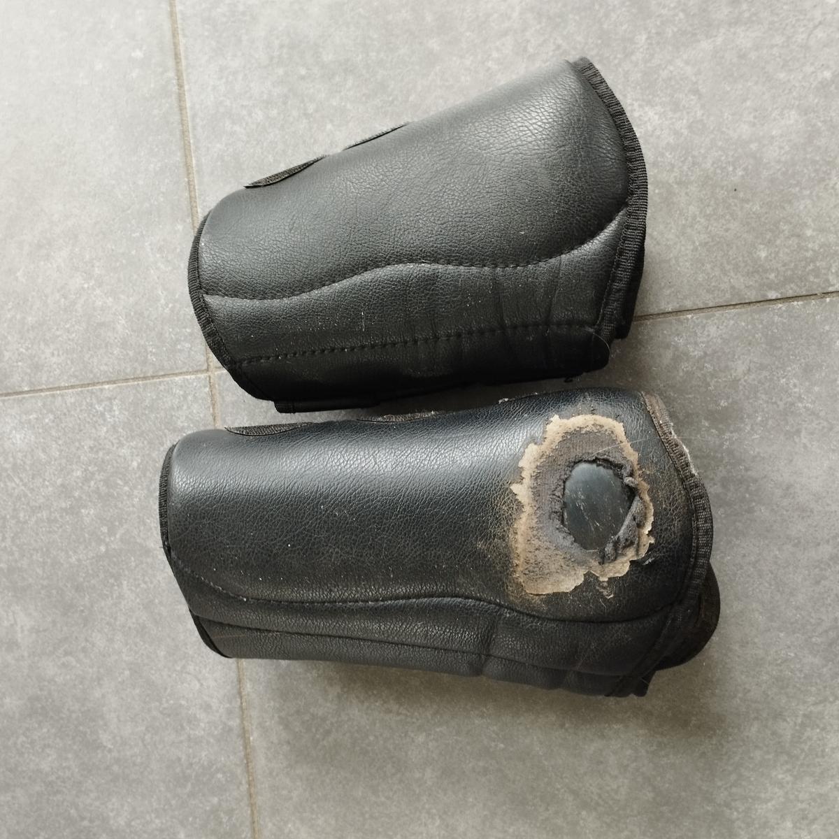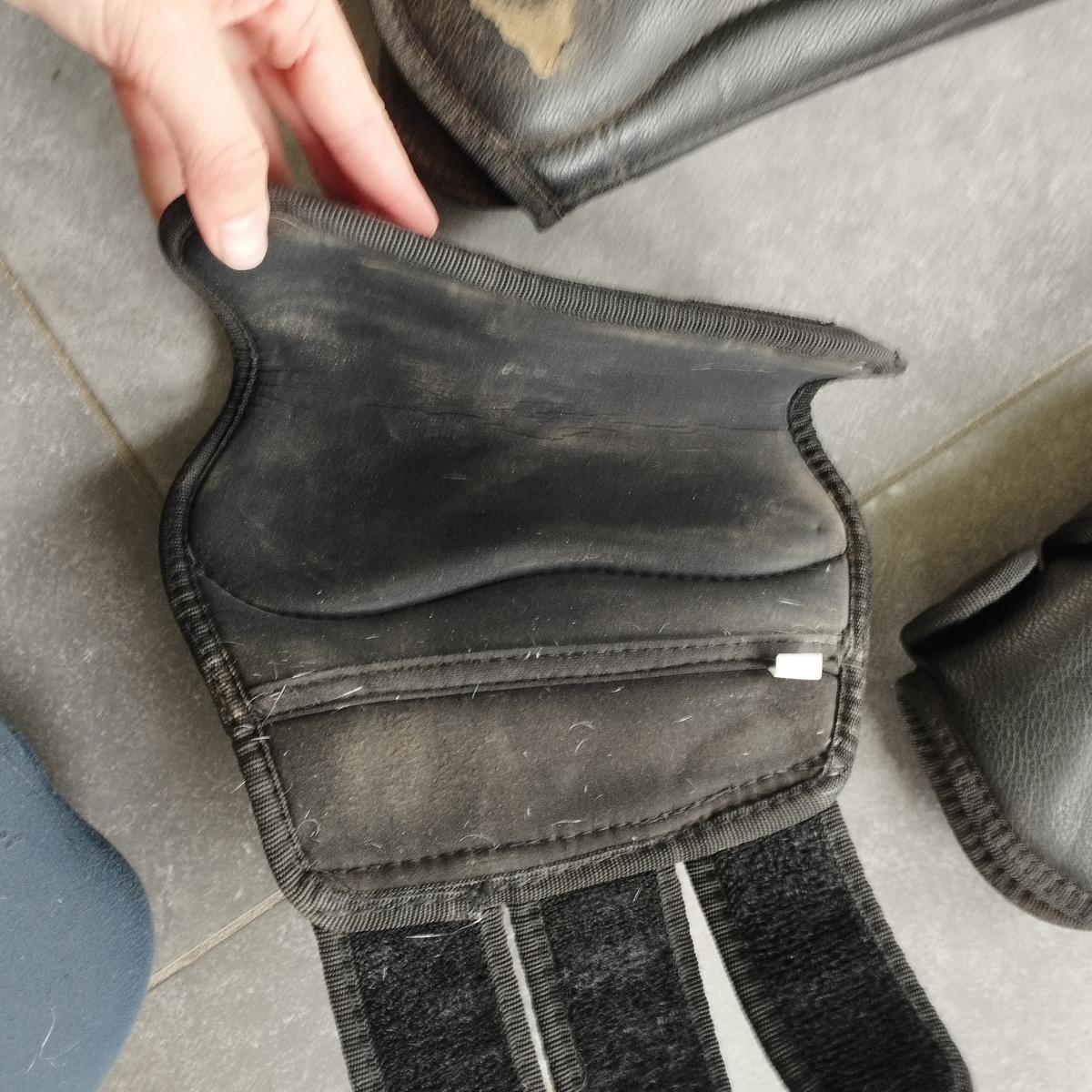 Ensemble guêtres de dressage dont le synthétique du postérieur est abîmé
